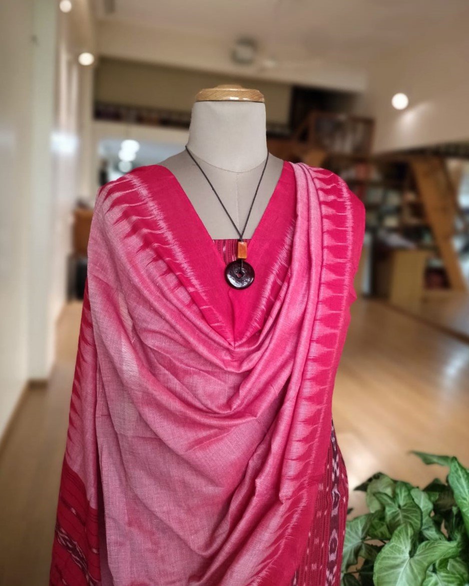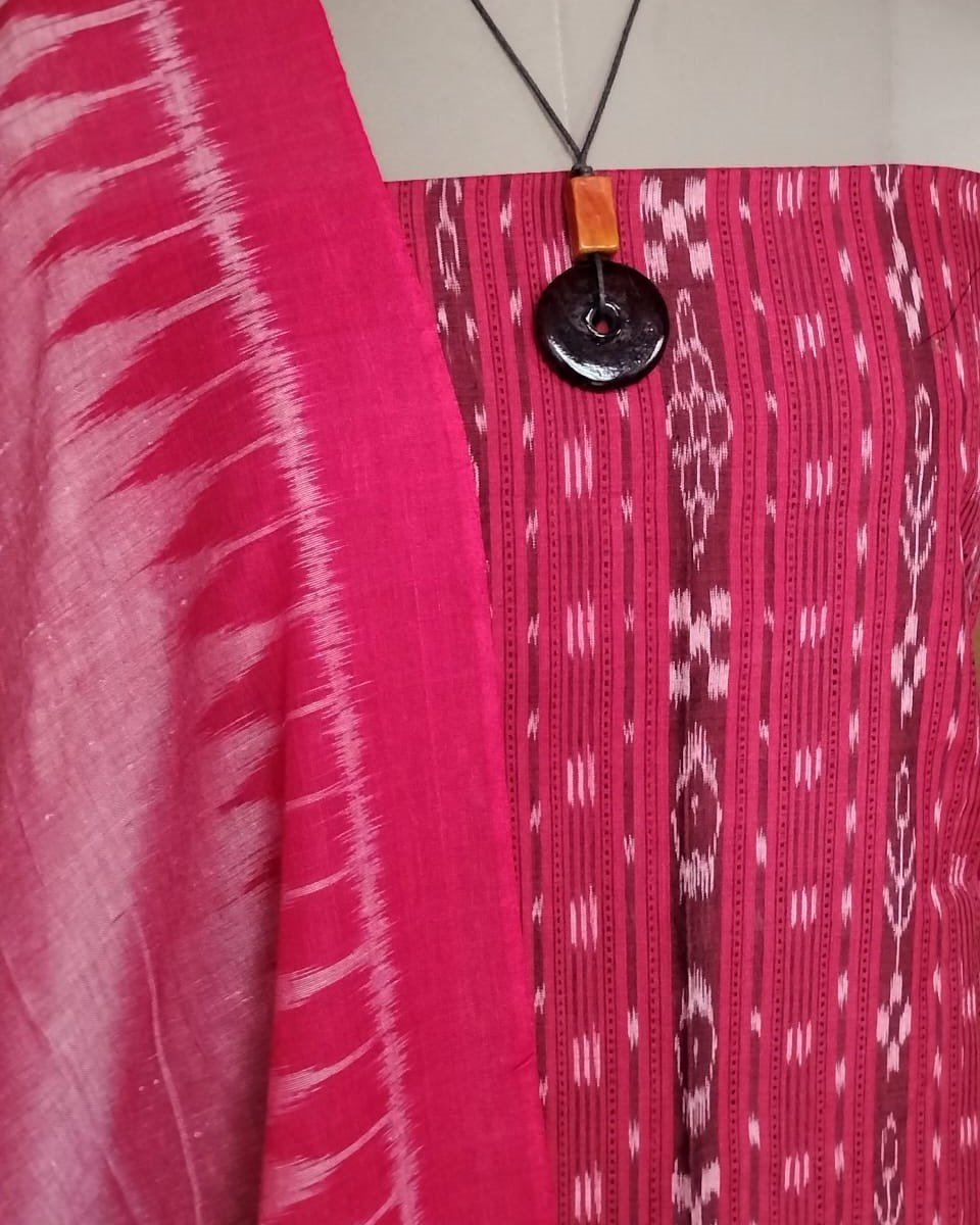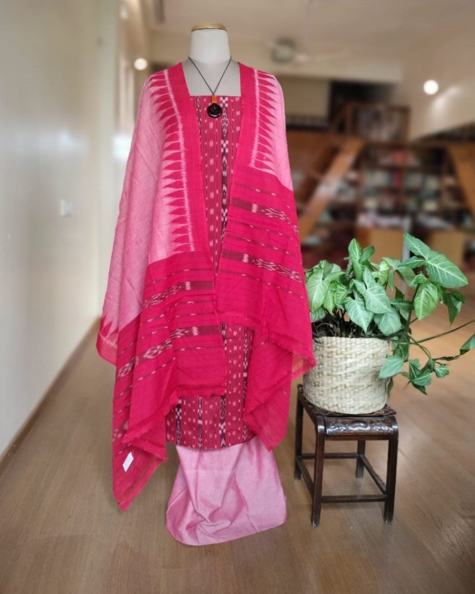 3-piece Cotton Salwar Set in Odisha ikat – Red and Light Pink