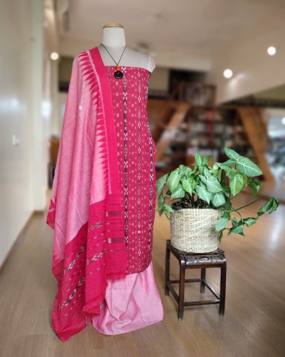 Single Ikat 3-piece Cotton Salwar Set in Odisha ikat (Unstitched fabric).