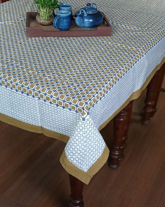 8-Seater Dining Table cloth in hand block print made in Jaipur. See more details below