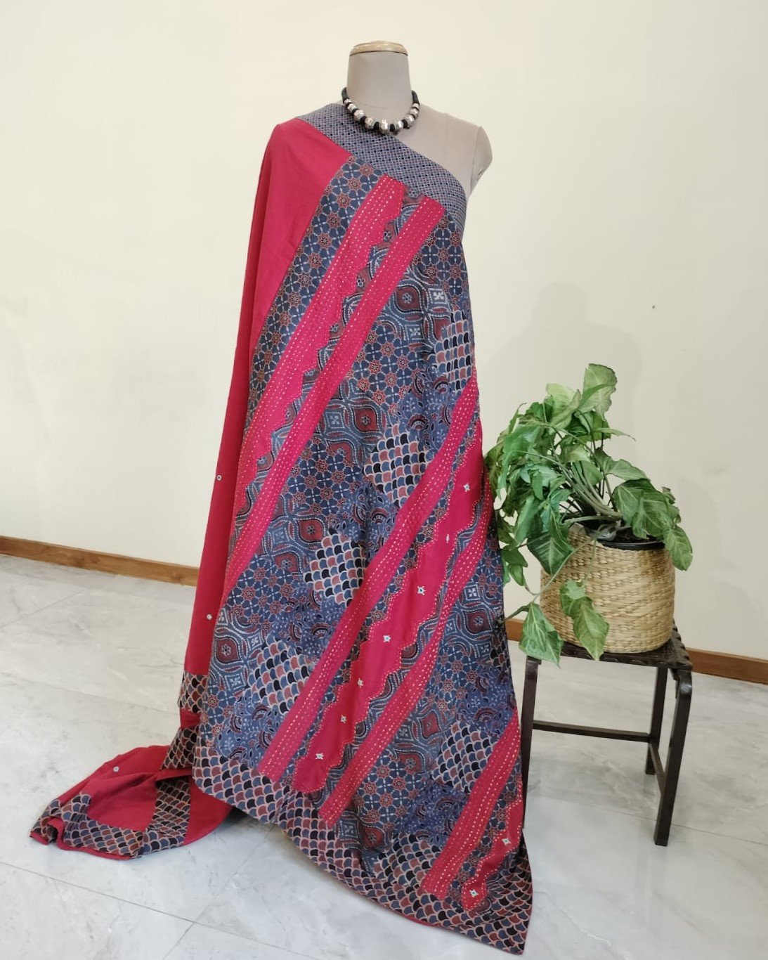 Tags: Ajrakh Applique, Barmer, Cotton saree, Mul Cotton, Rajasthan