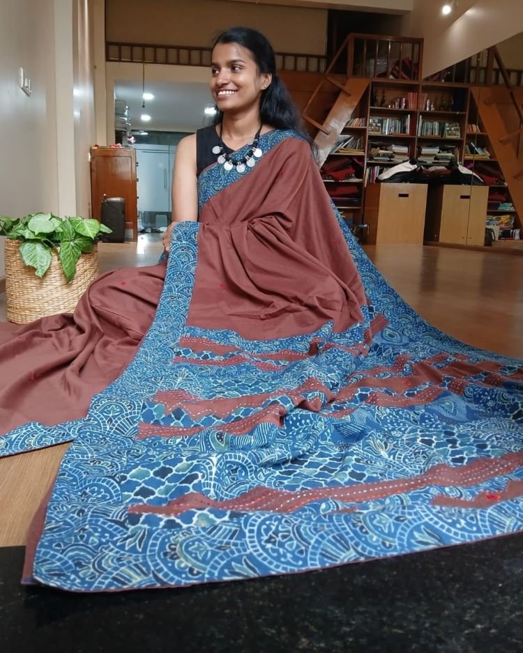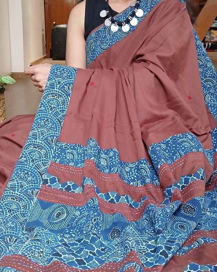 Tags: Ajrakh Applique, Barmer, Cotton saree, Mul Cotton, Rajasthan