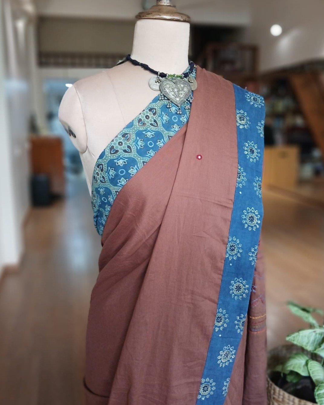 Ajrakh Applique Saree in Mul Cotton. See more details below.