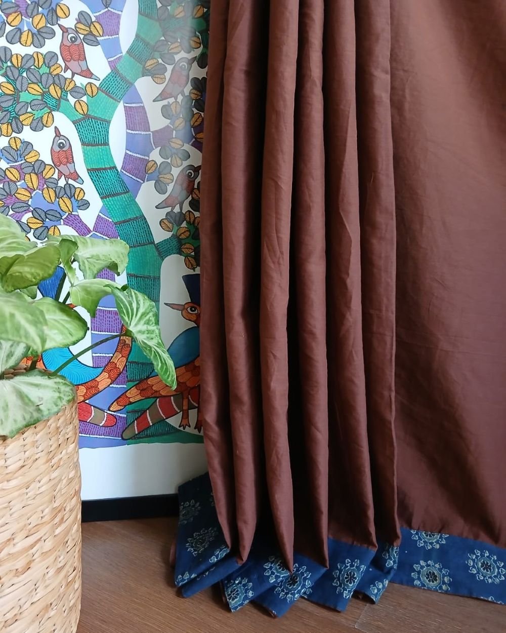 The applique is a patchwork of Ajrakh handblock; it’s artistically done in natural dyes.