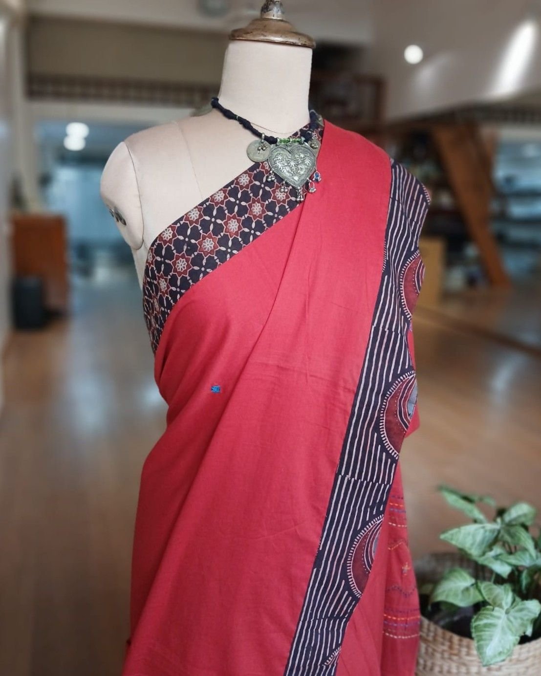 Ajrakh Applique Saree in Mul Cotton. See more details below.