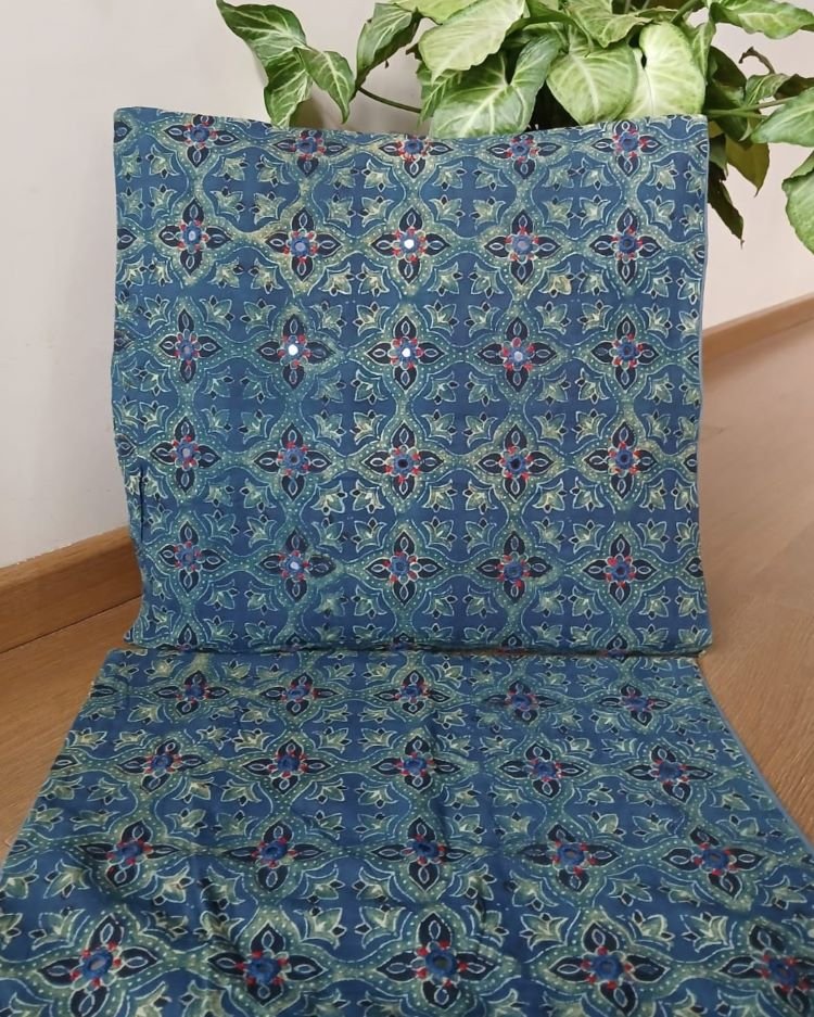 Made in Barmer Rajasthan using natural dyes Ajrakh.