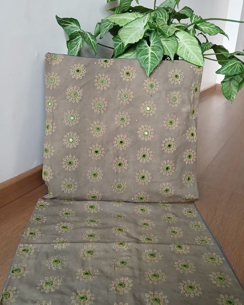 Ajrakh Cushion Covers in Natural Dyes with Hand Embroidery – (CUSH0022)