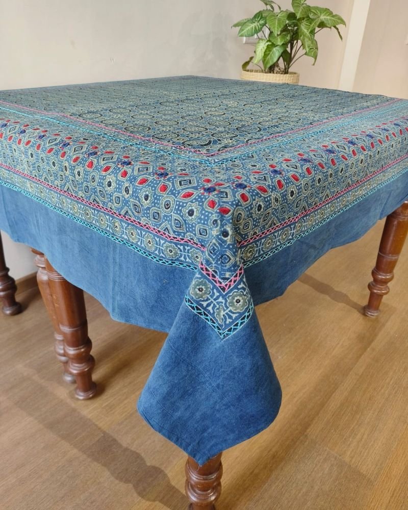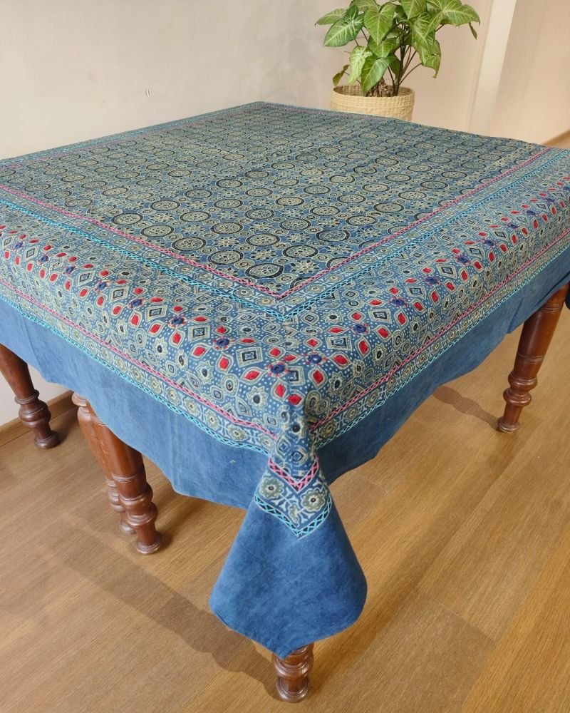 Ajrakh Embroidered Table cloth in Natural Dyes – TCAE1004