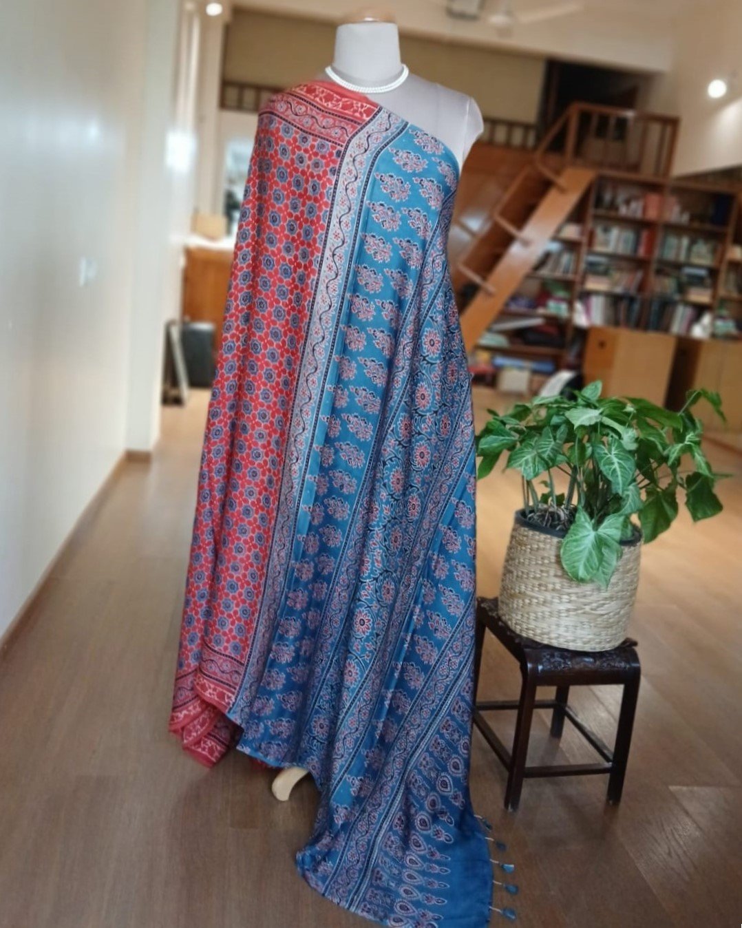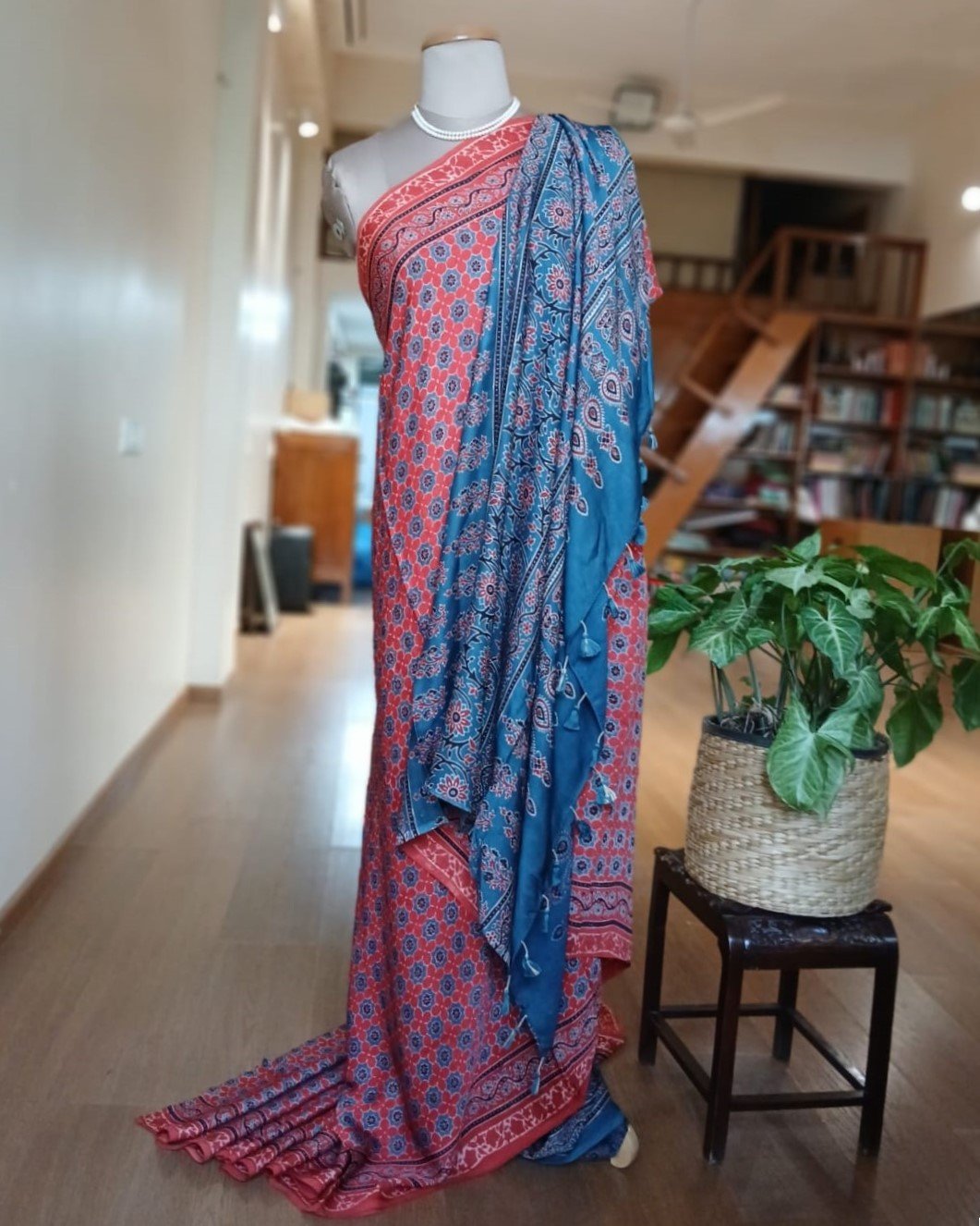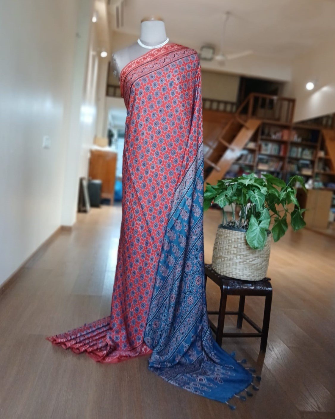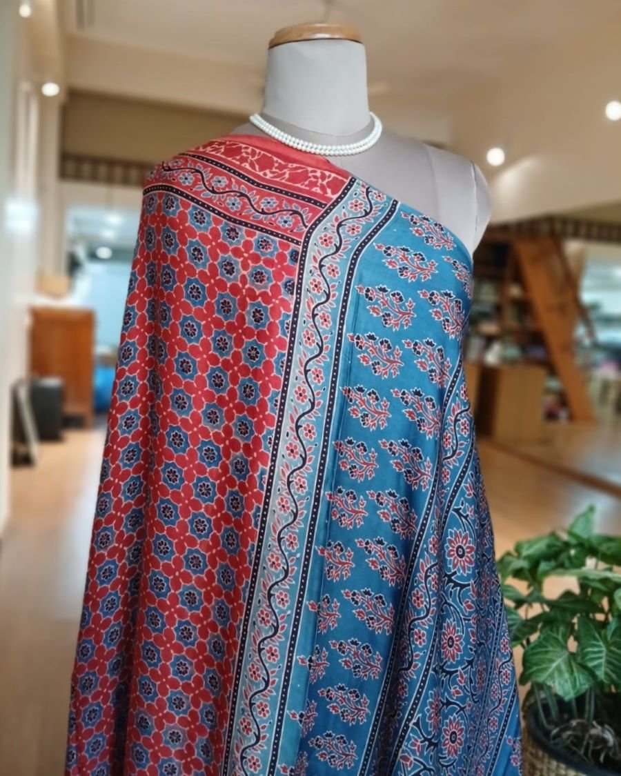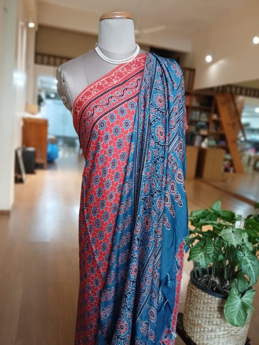 Ajrakh modal saree in natural dyes, from Ajrakhpur in India