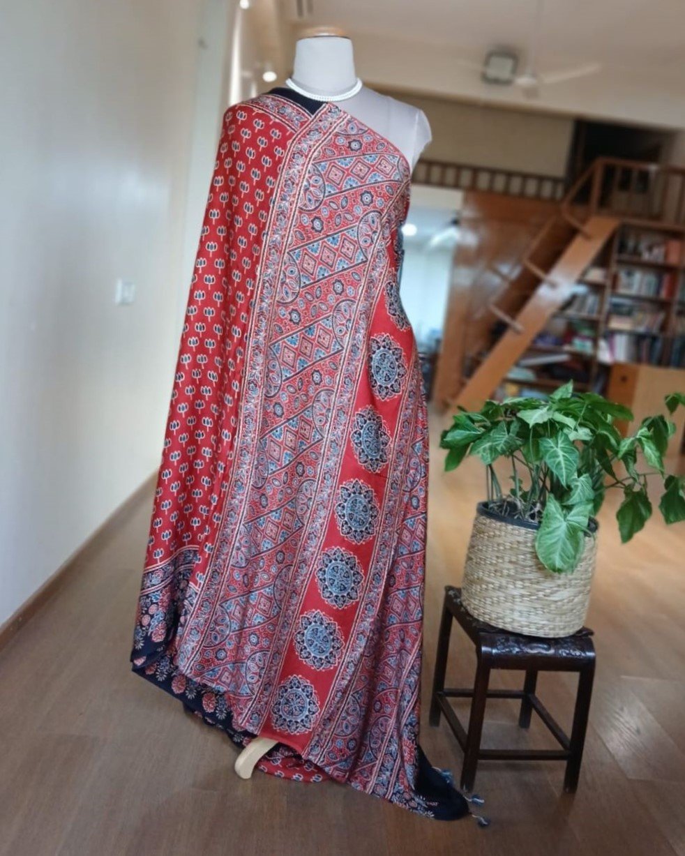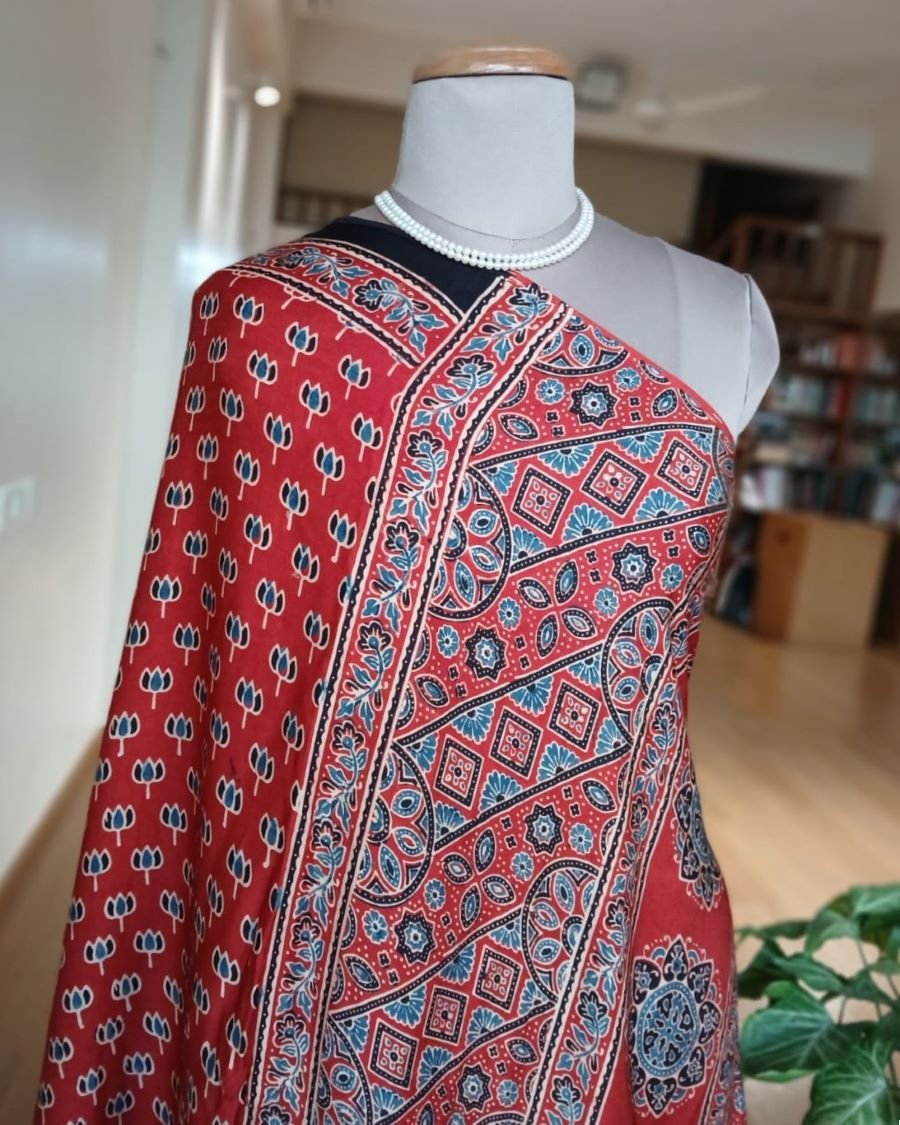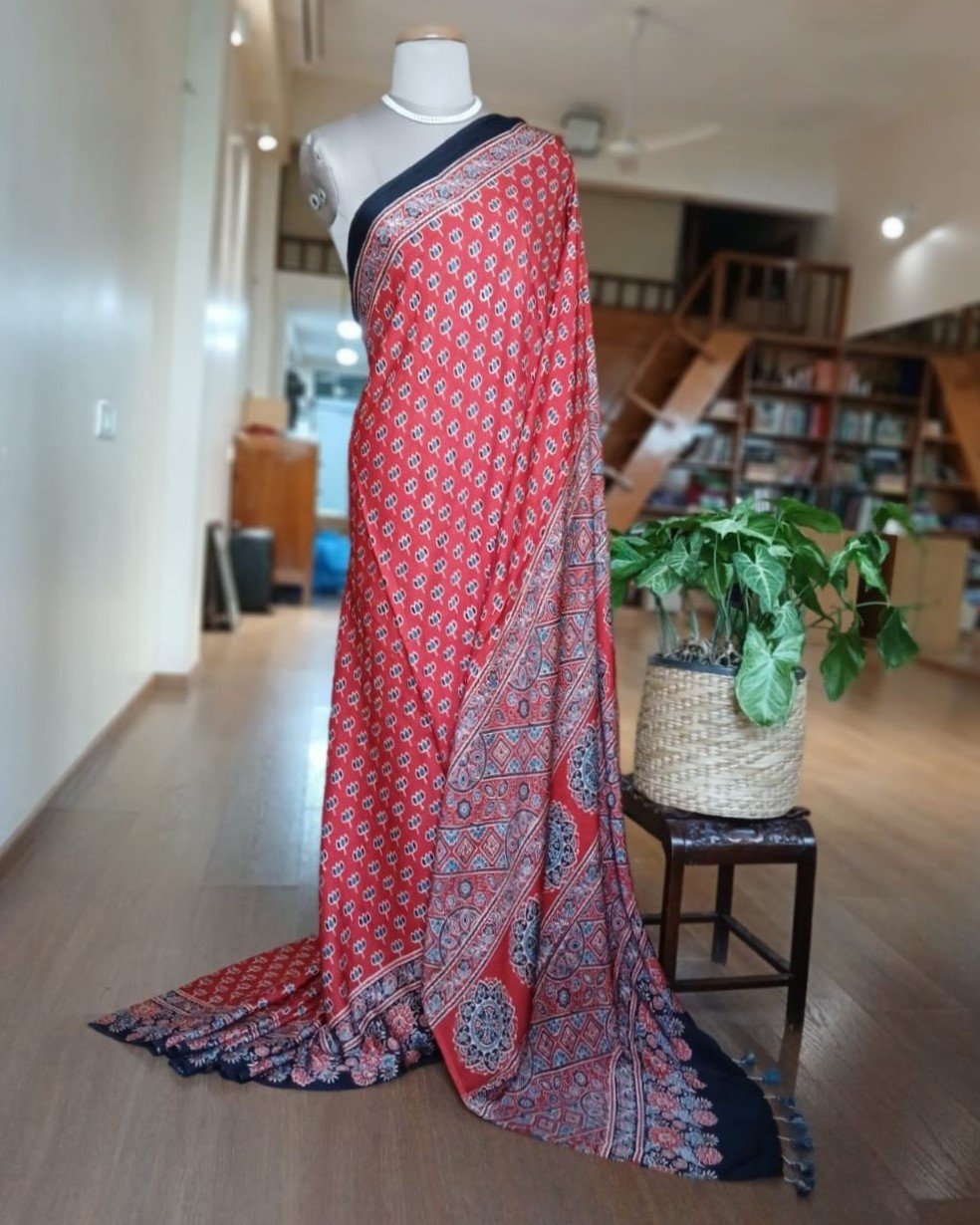 Ajrakh modal saree in natural dyes, from Ajrakhpur in India