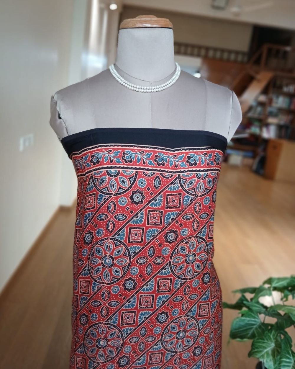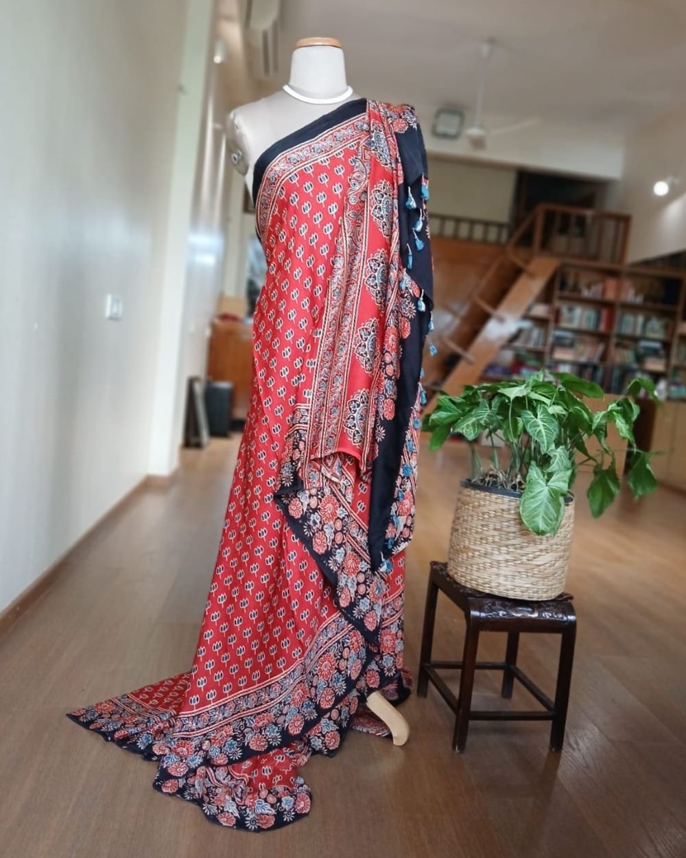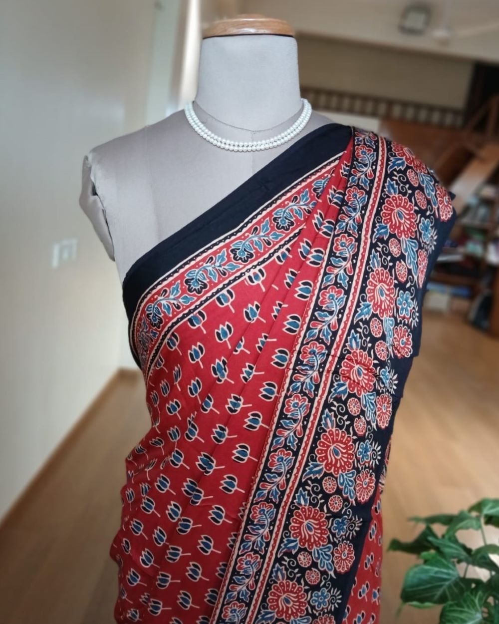 Ajrakh modal saree in natural dyes, from Ajrakhpur in India