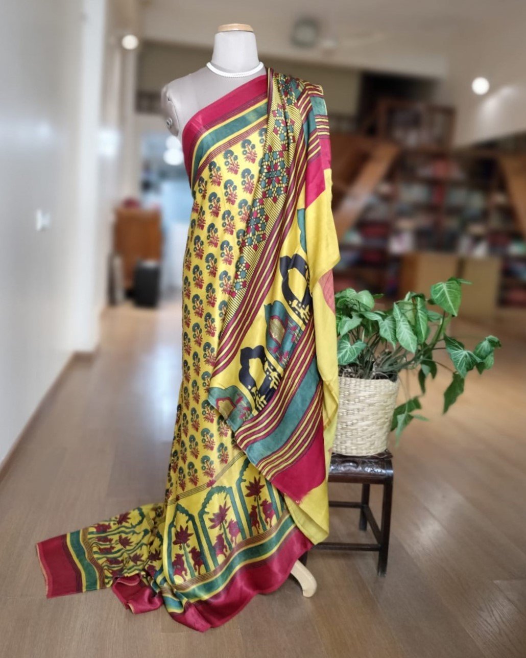Ajrakh modal saree in beautiful handblock.