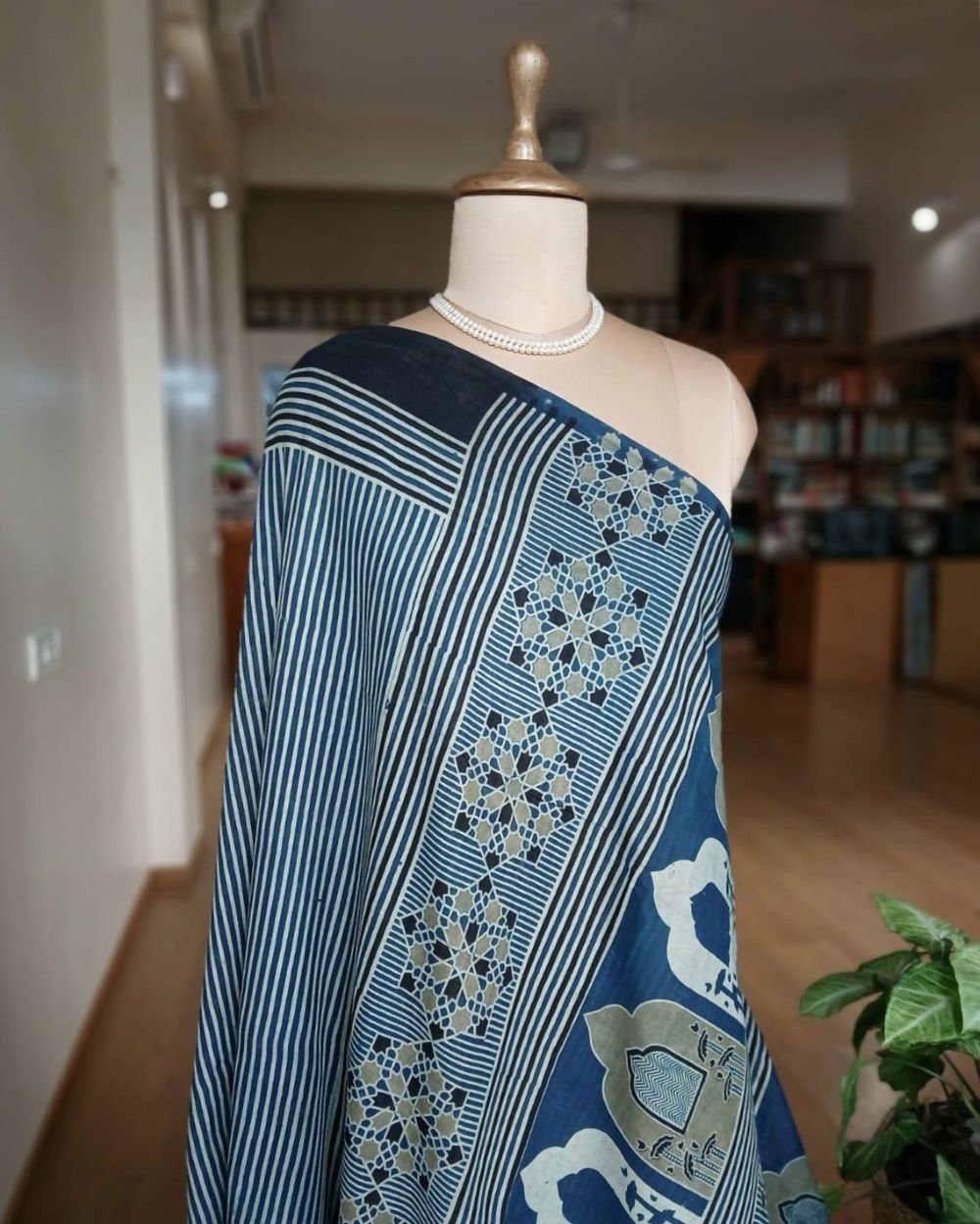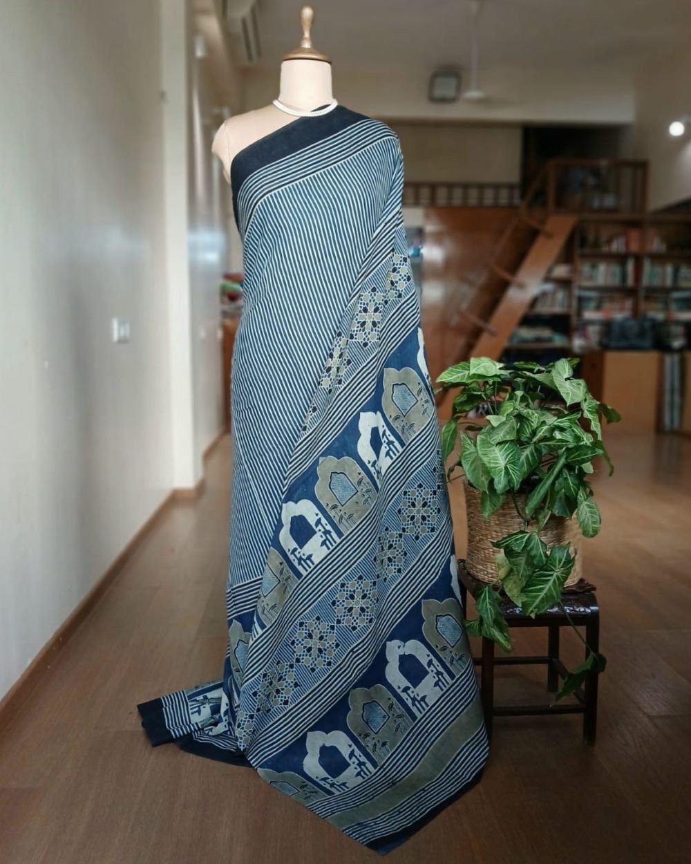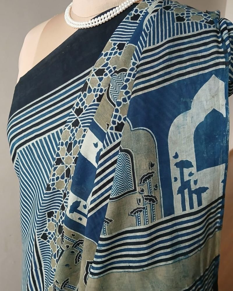 Ajrakh in Natural Dyes on Mul Cotton Saree. See More Details .