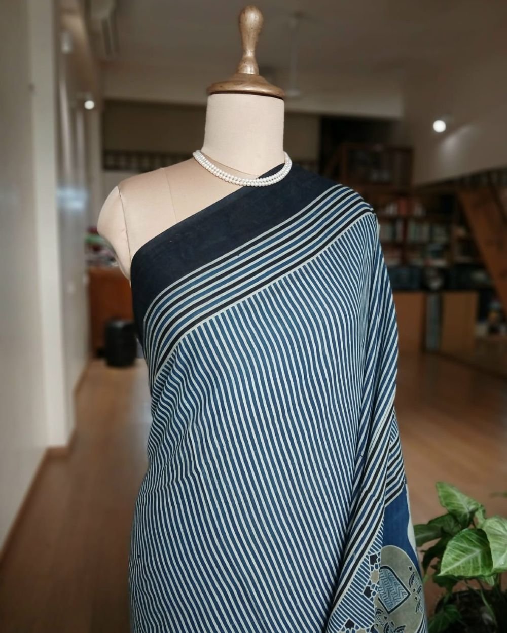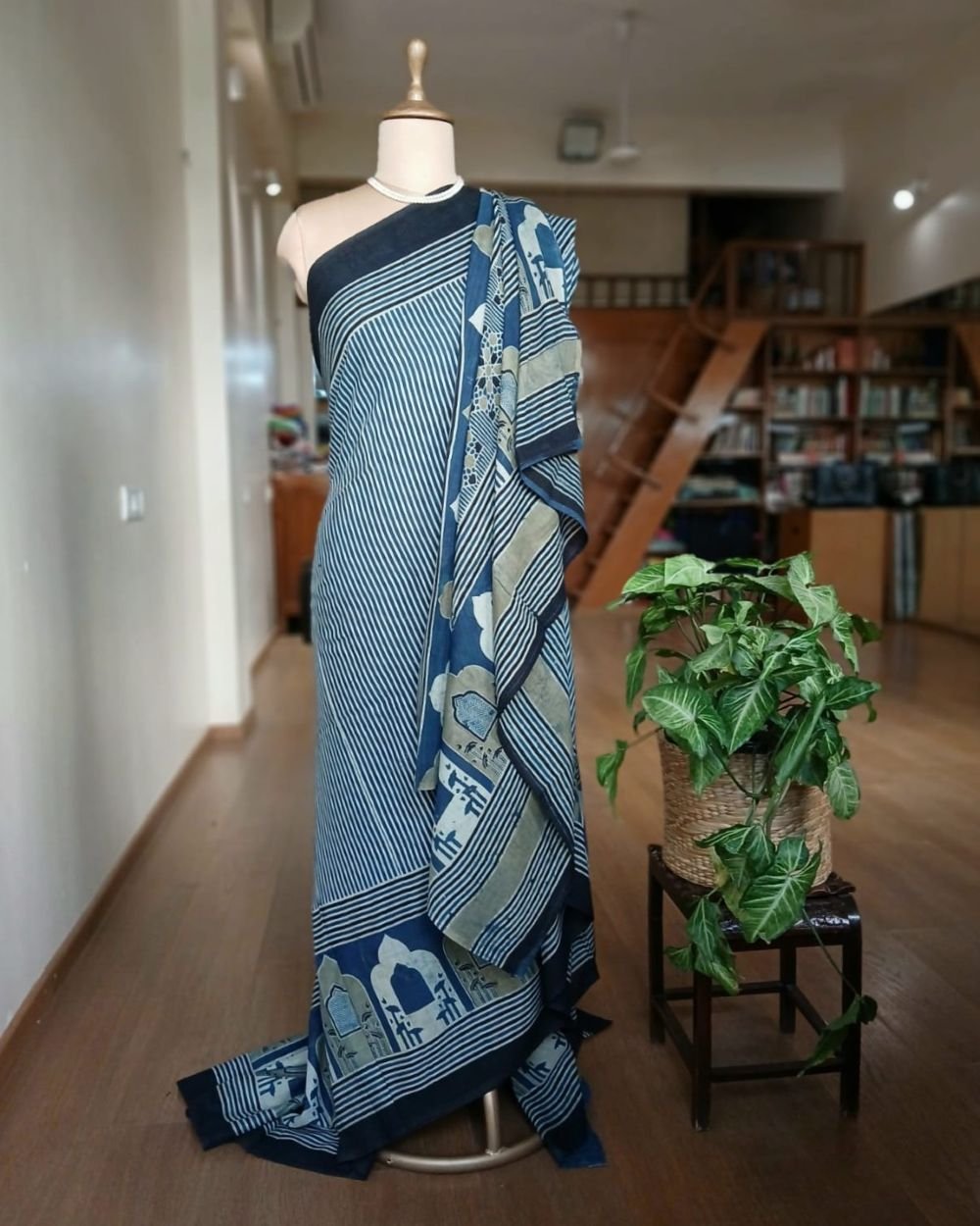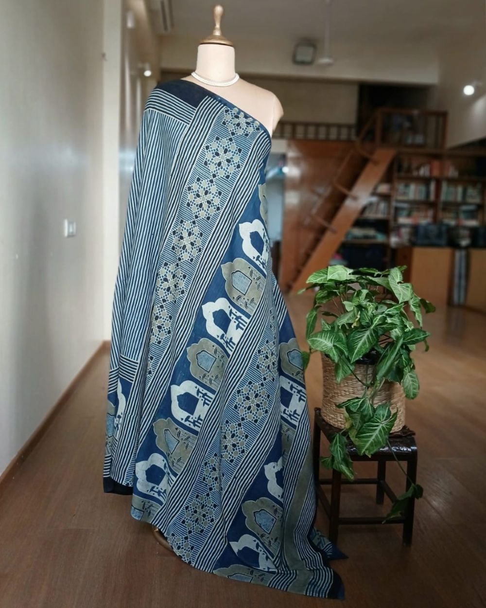 Ajrakh in Natural Dyes on Mul Cotton Saree. See More Details .