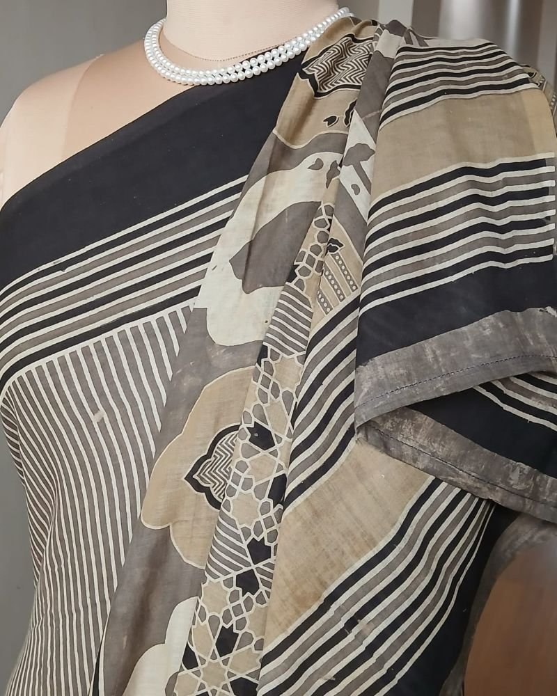 Ajrakh in Natural Dyes on Mul Cotton Saree. See More Details .