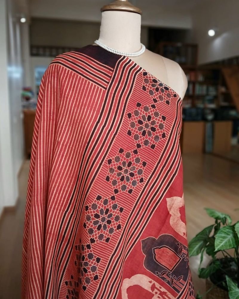 Ajrakh in Natural Dyes on Mul Cotton Saree. See More Details .