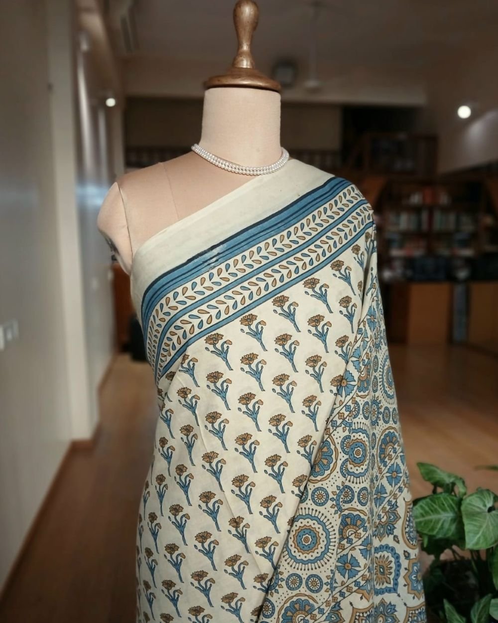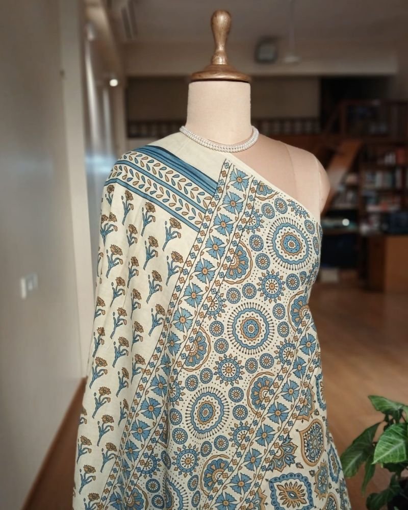 Ajrakh in Natural Dyes on Mul Cotton Saree. See More Details .