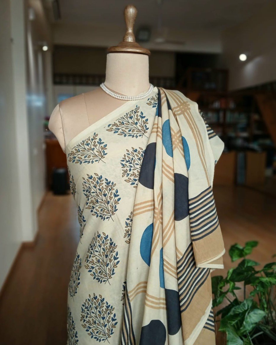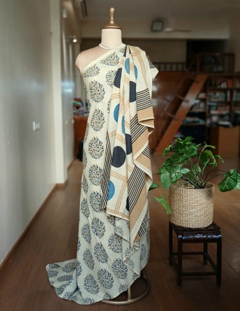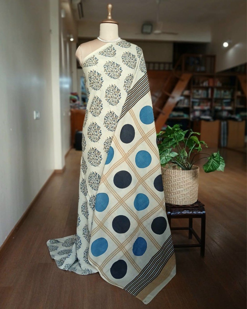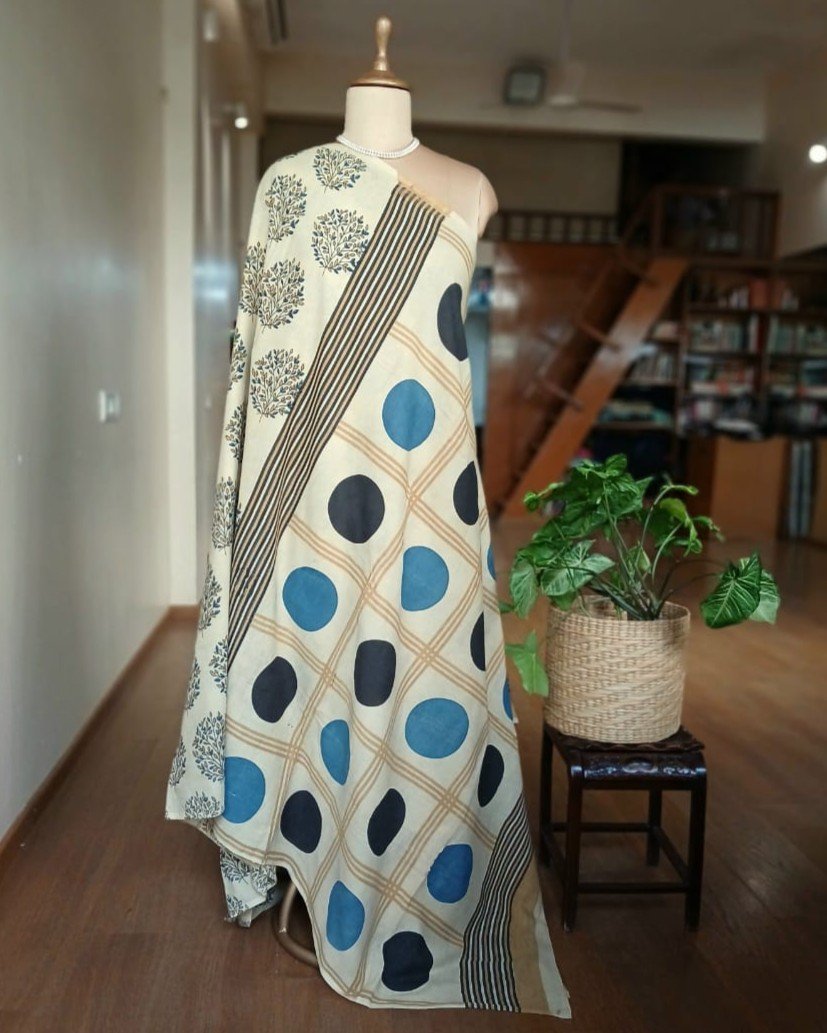 Ajrakh in Natural Dyes on Mul Cotton Saree. See More Details .