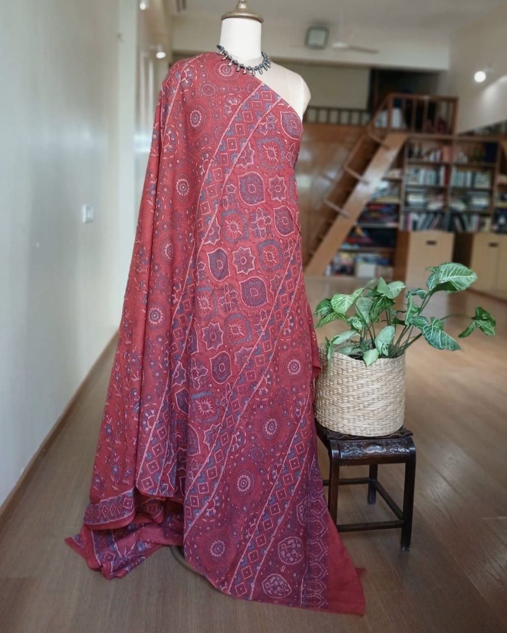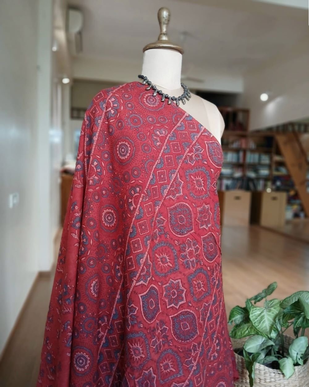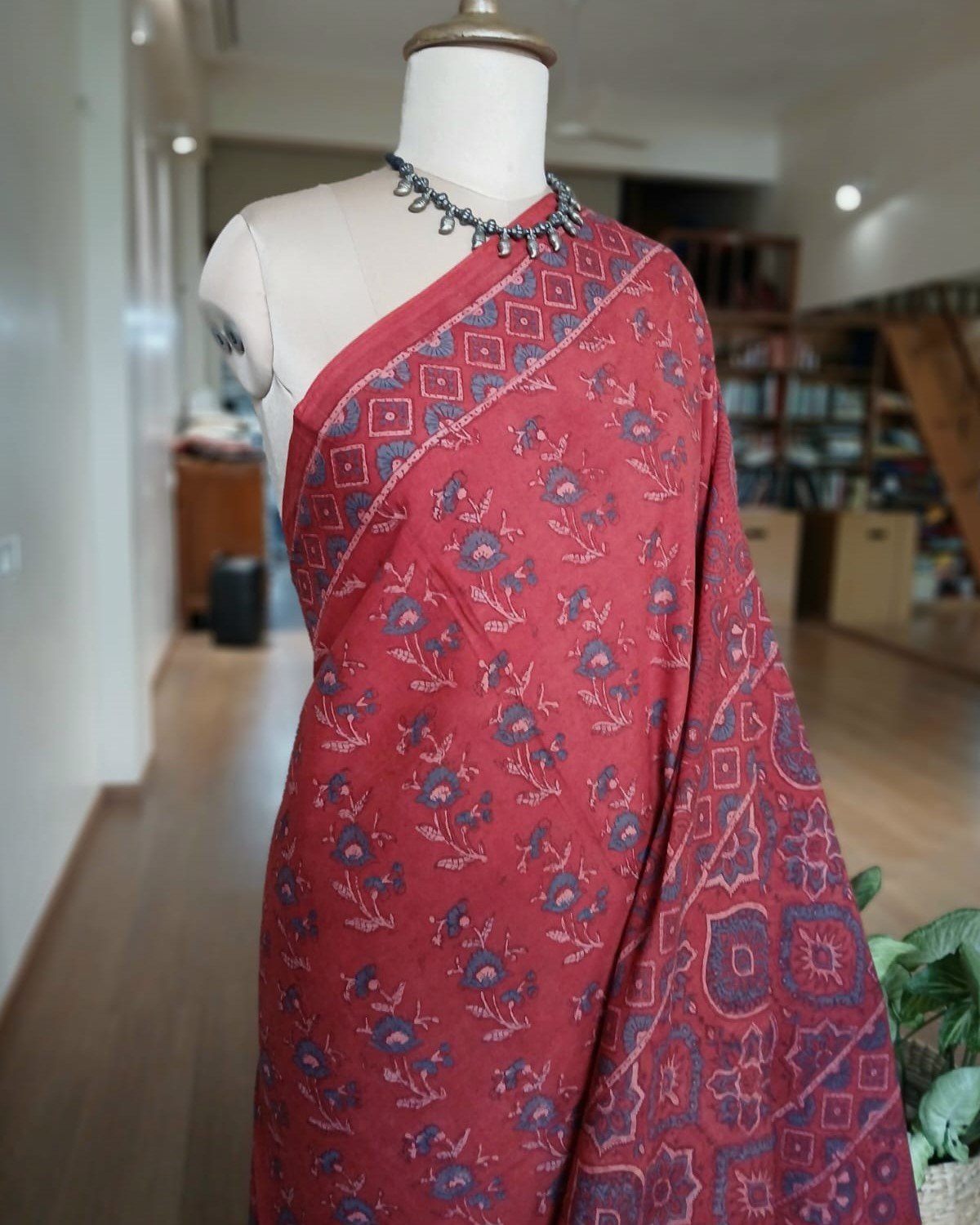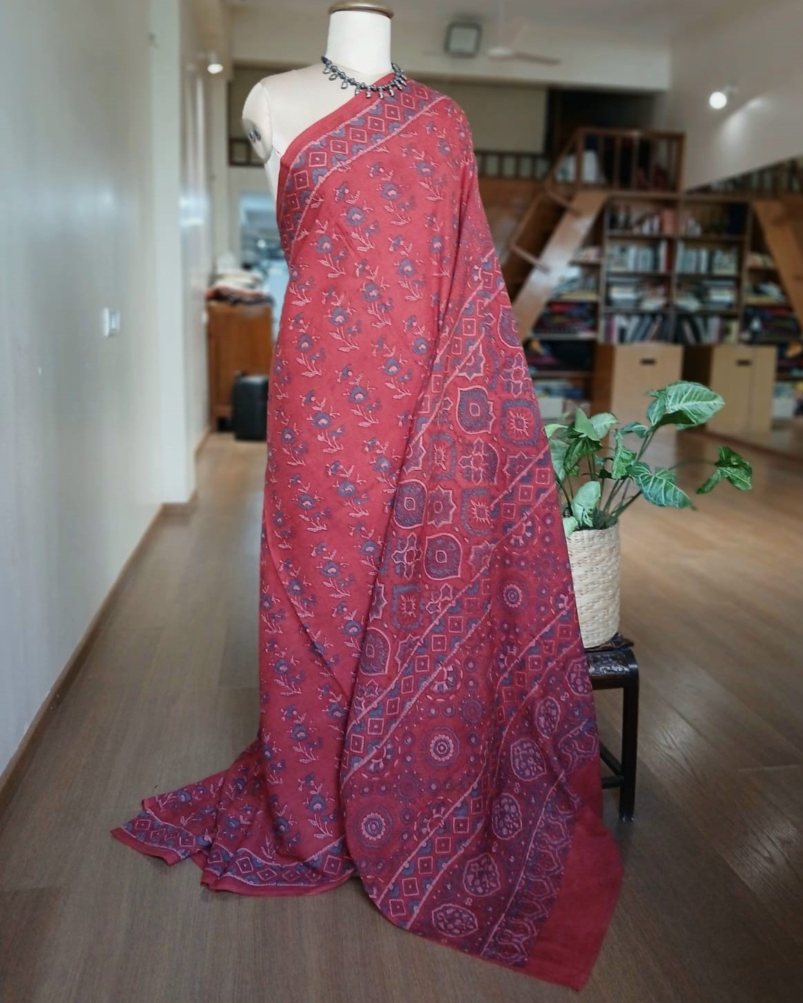 Ajrakh in Natural Dyes on Mul Cotton Saree