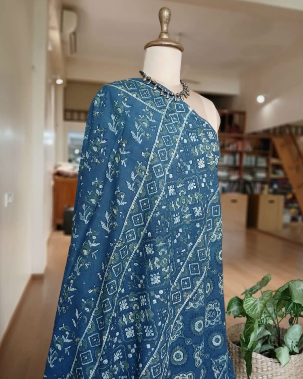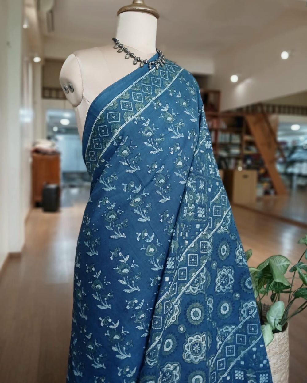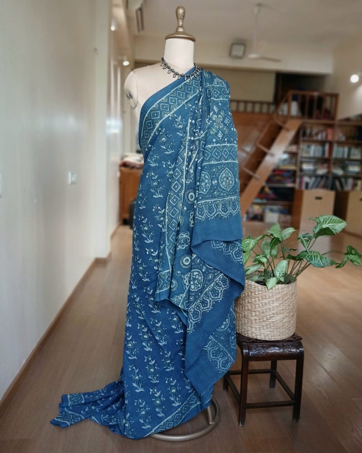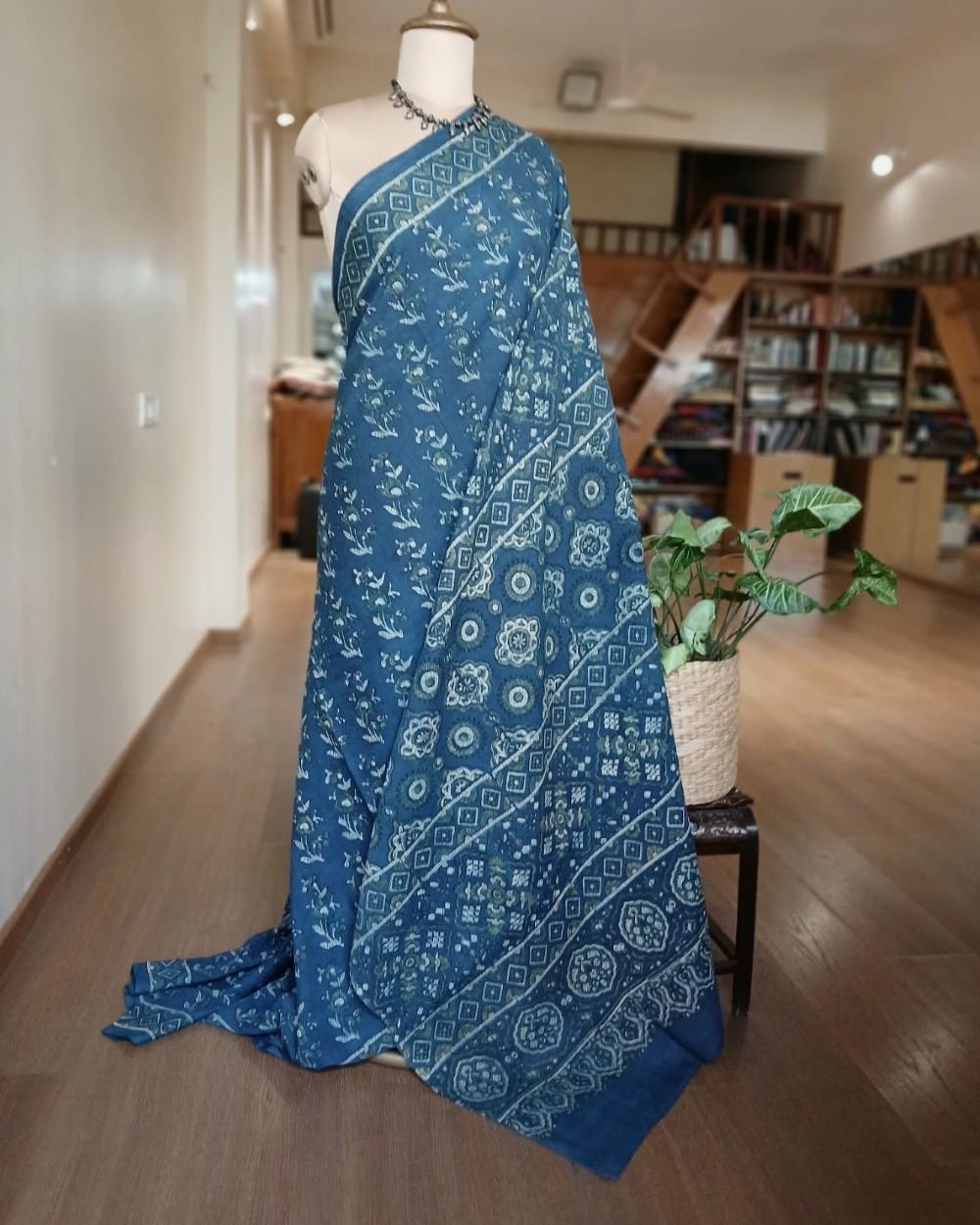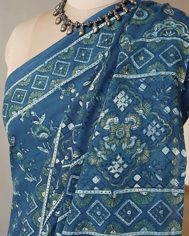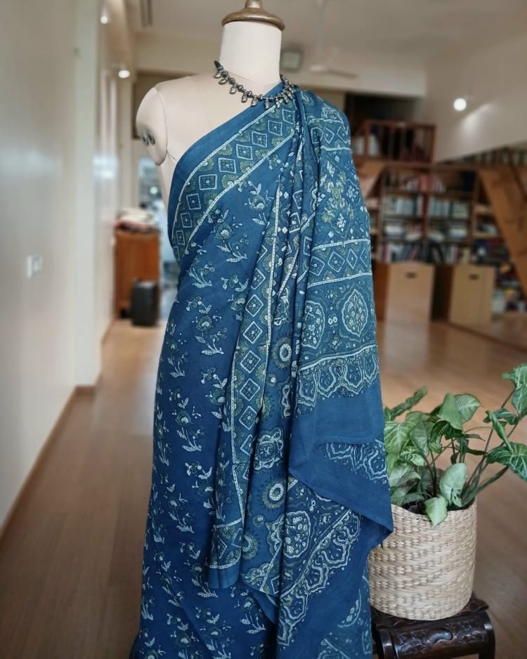 Ajrakh in Natural Dyes on Mul Cotton Saree