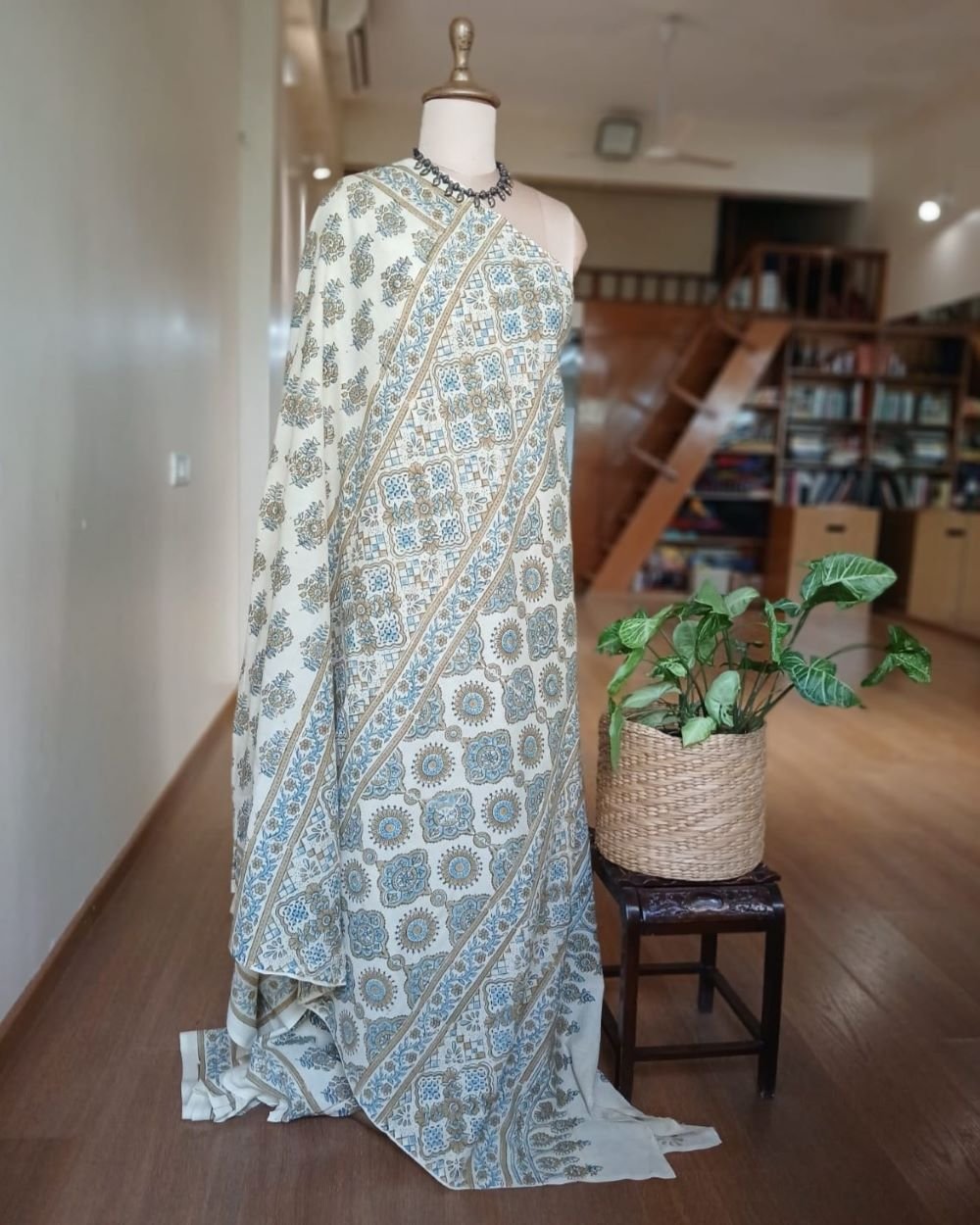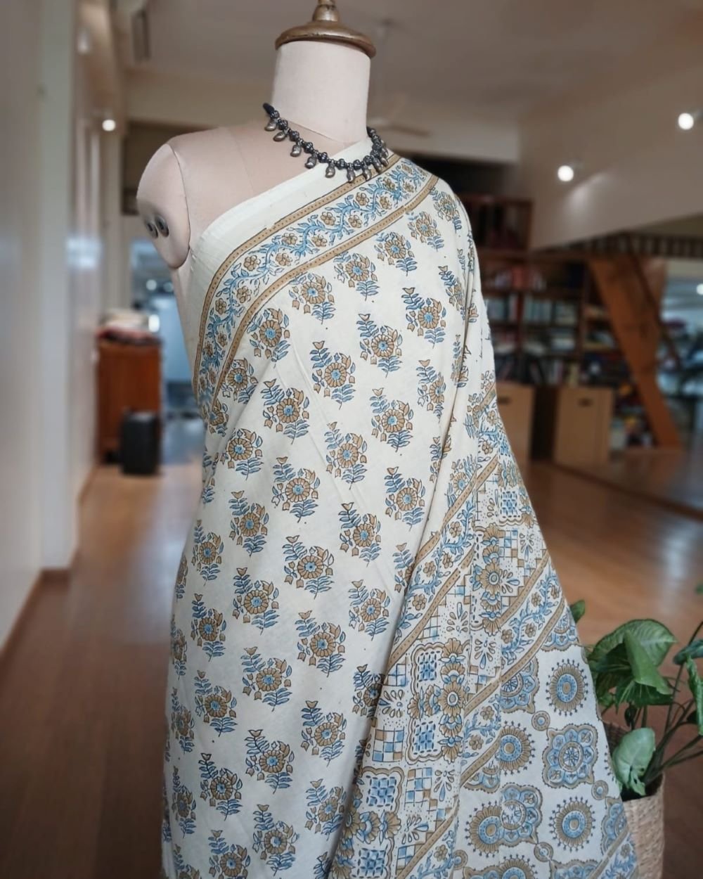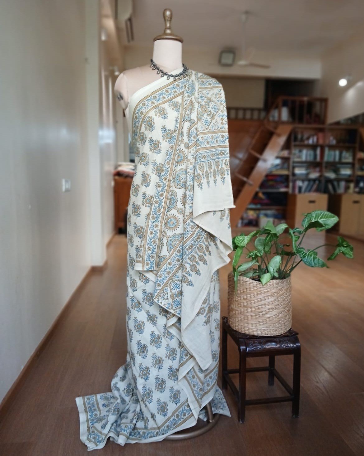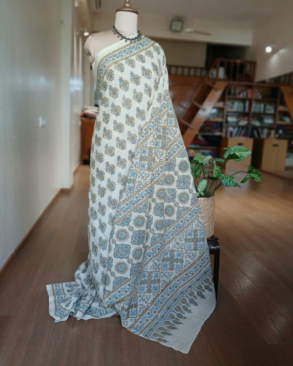 Ajrakh in Natural Dyes on Mul Cotton Saree