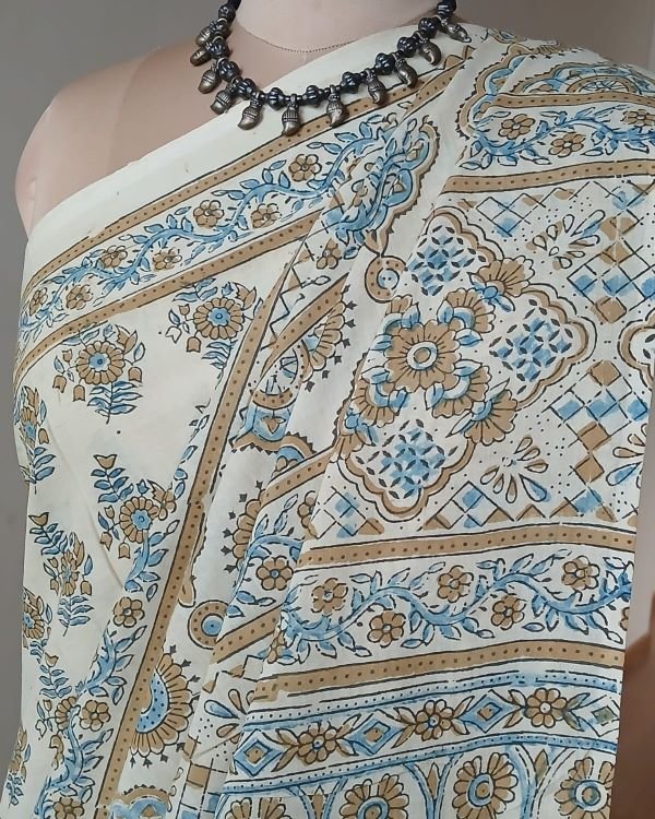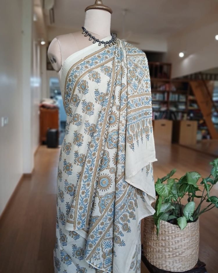 Ajrakh in Natural Dyes on Mul Cotton Saree. See More Details .