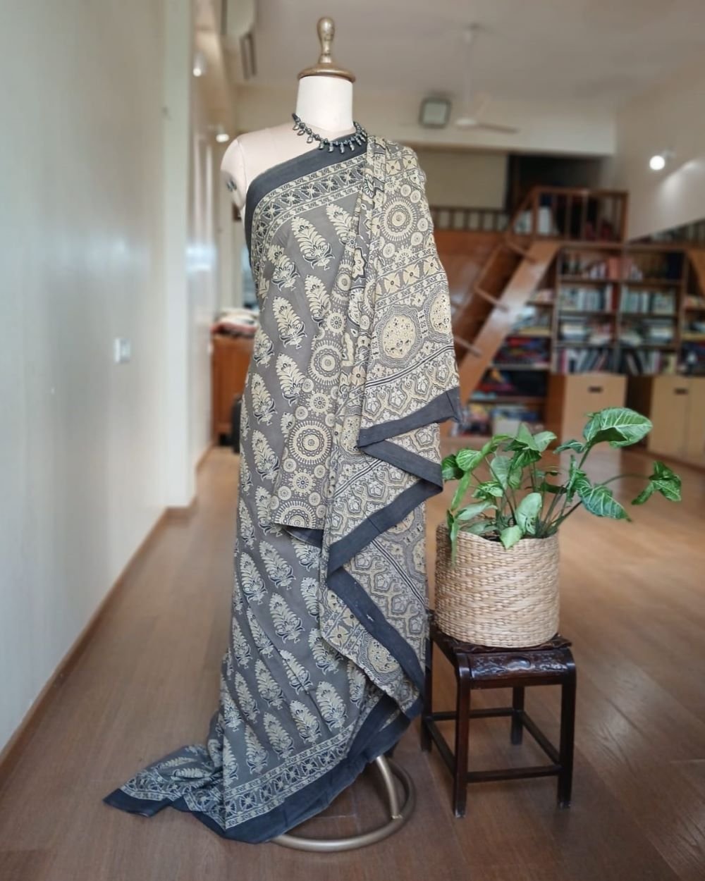 Ajrakh in Natural Dyes on Mul Cotton Saree. See More Details .