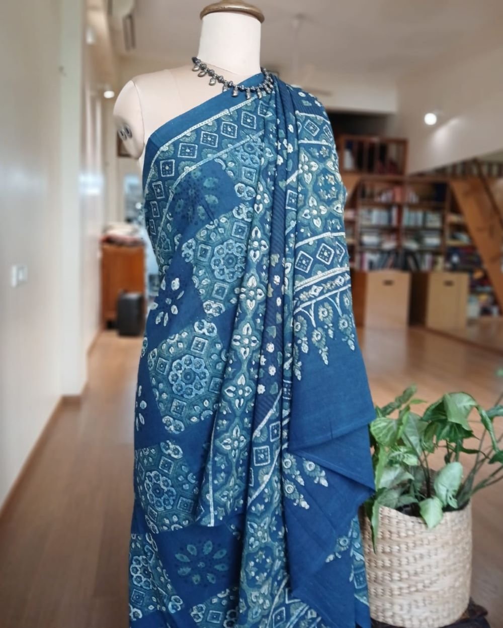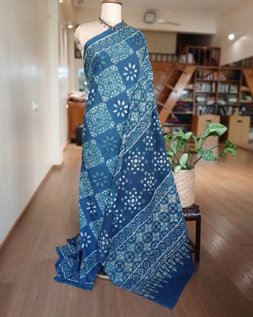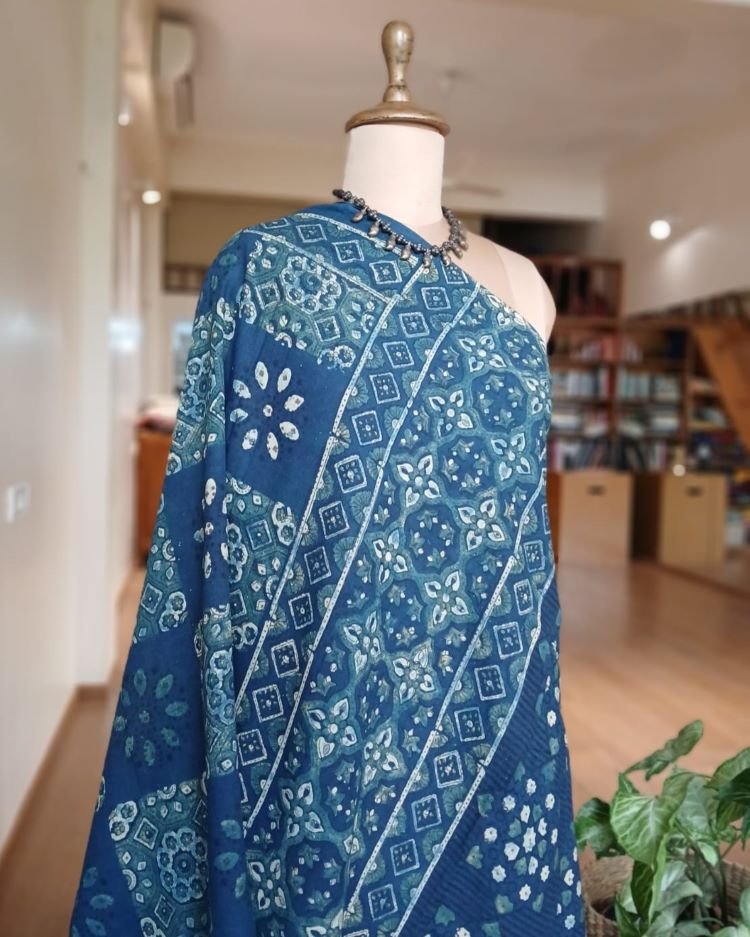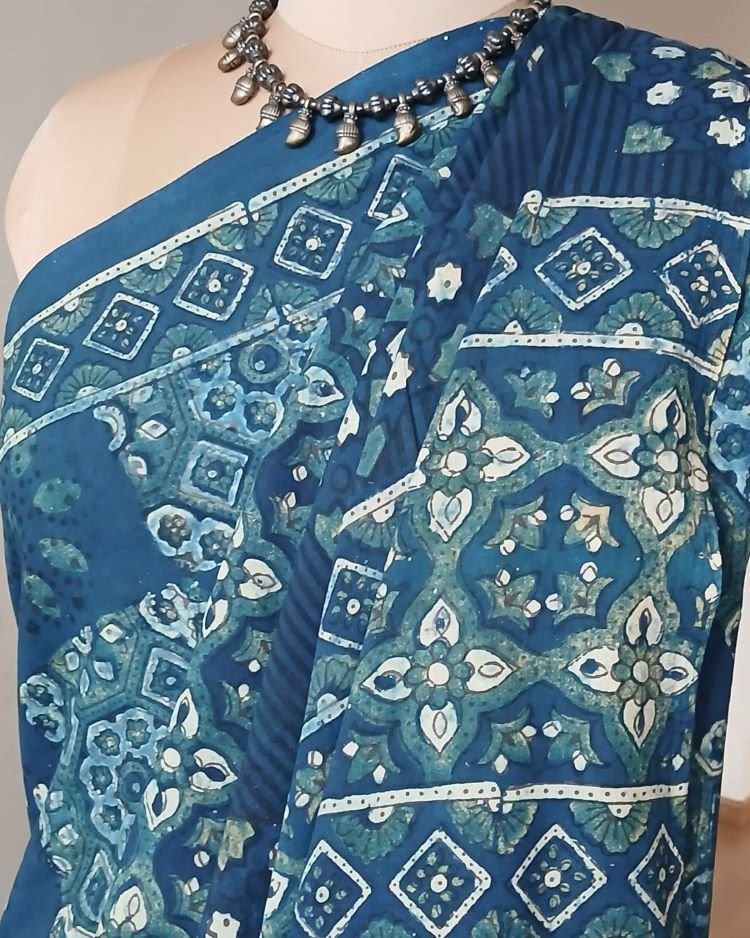 Ajrakh in Natural Dyes on Mul Cotton Saree