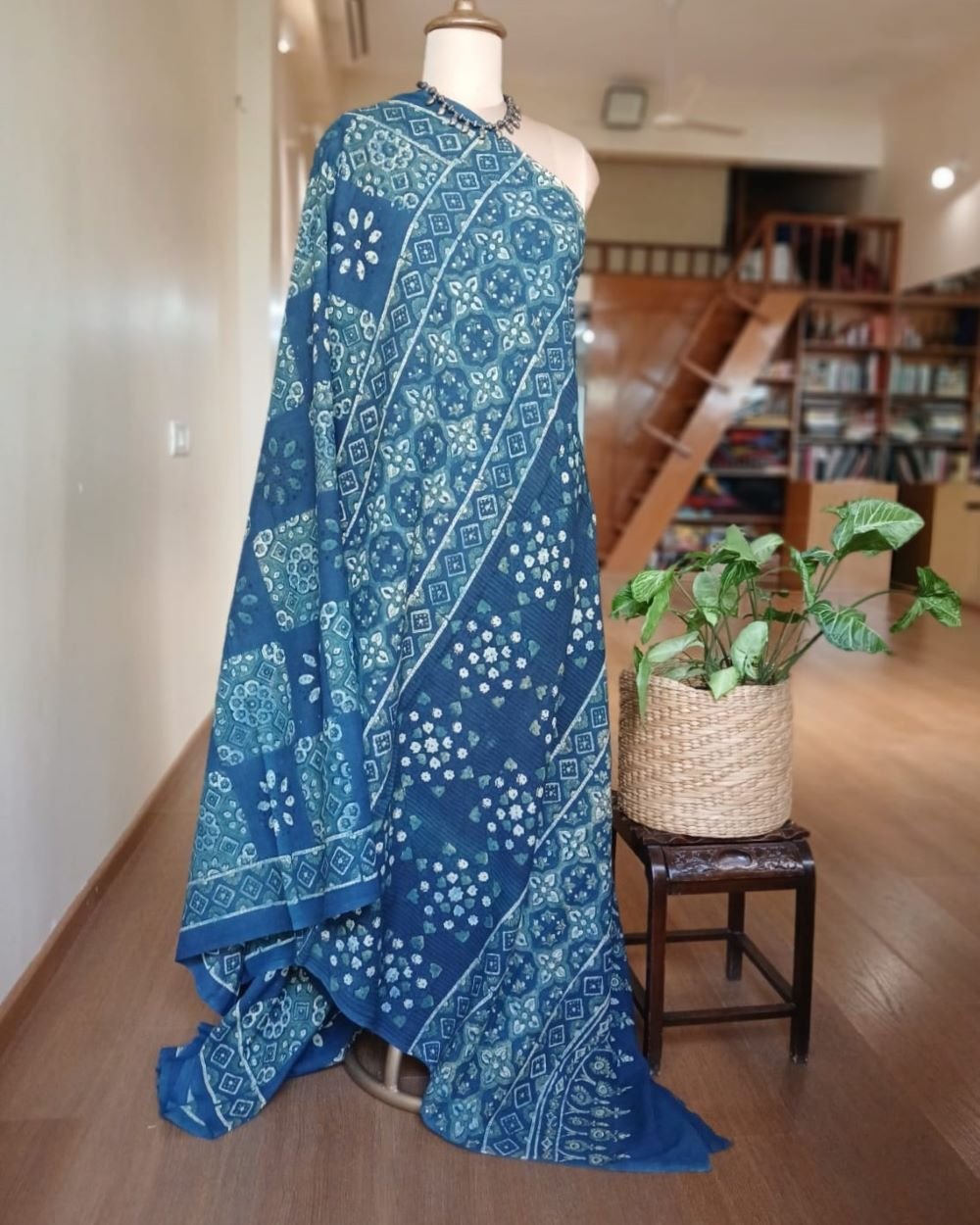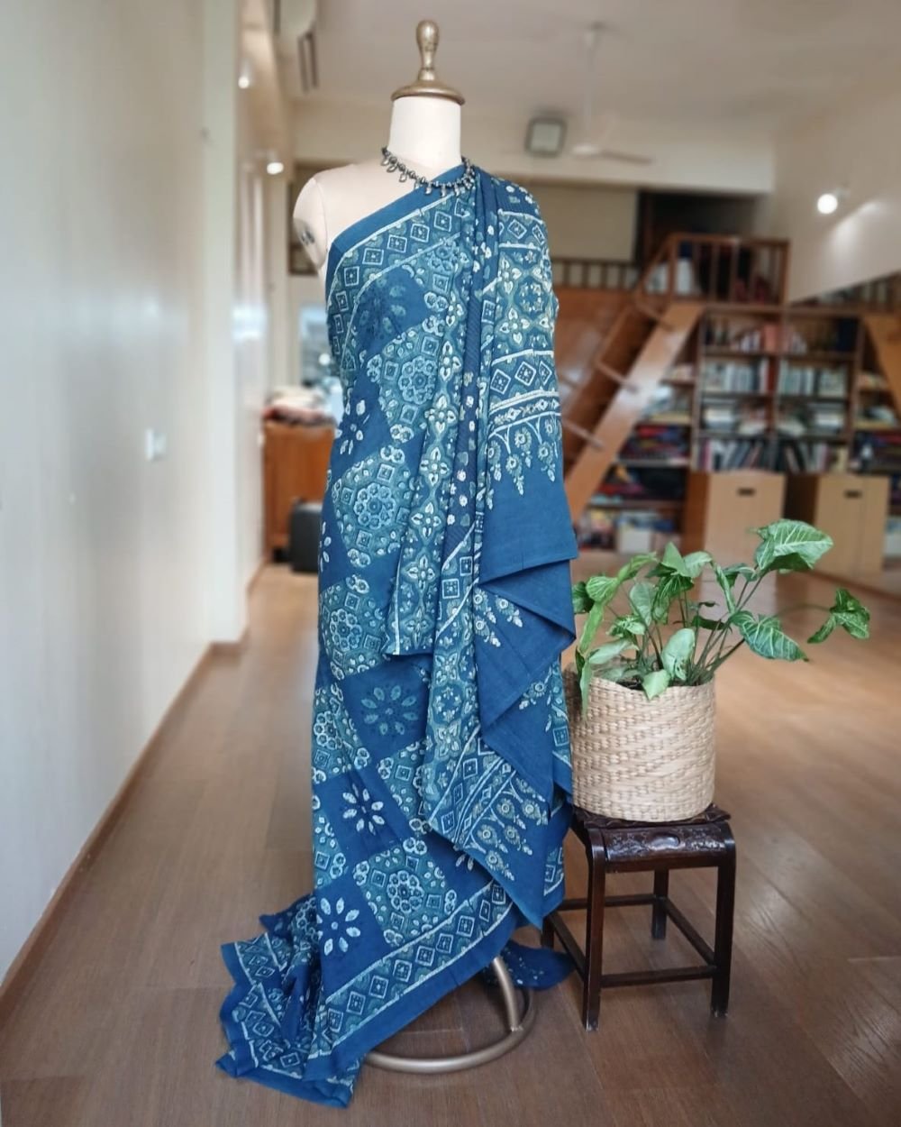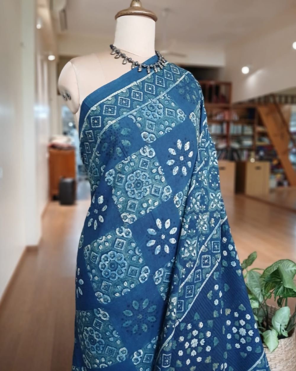 Ajrakh in Natural Dyes on Mul Cotton Saree