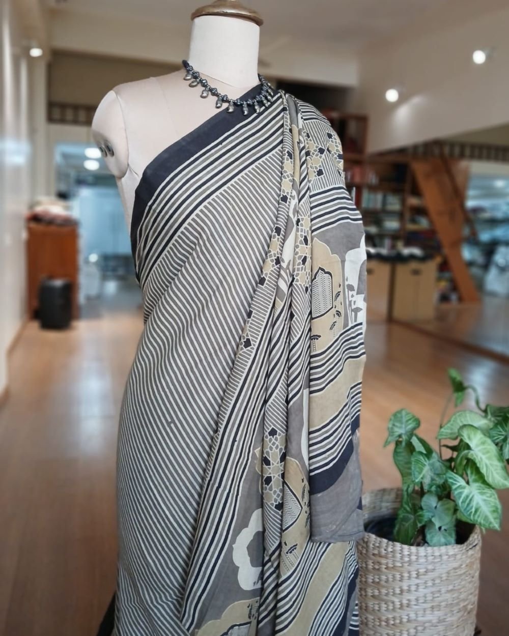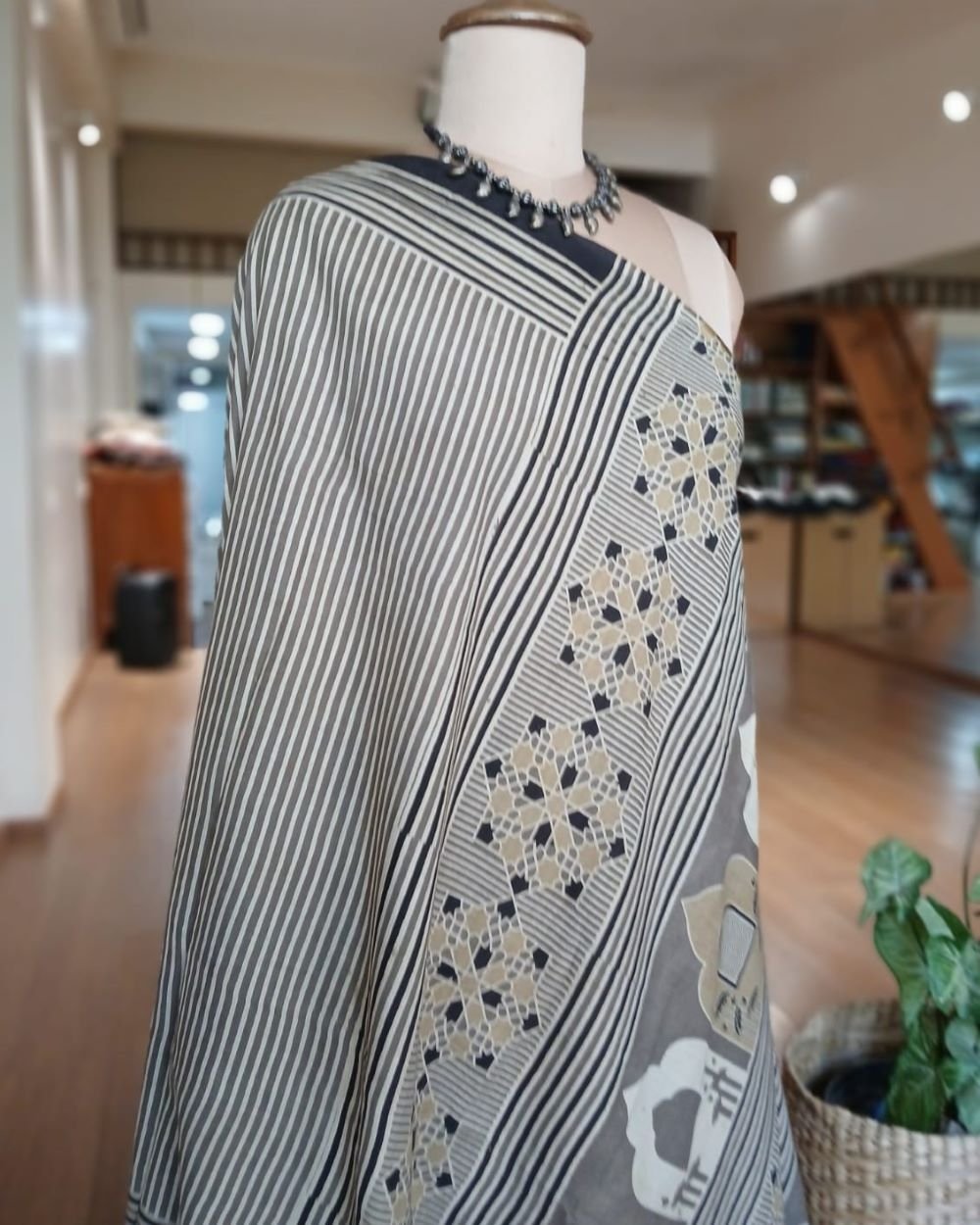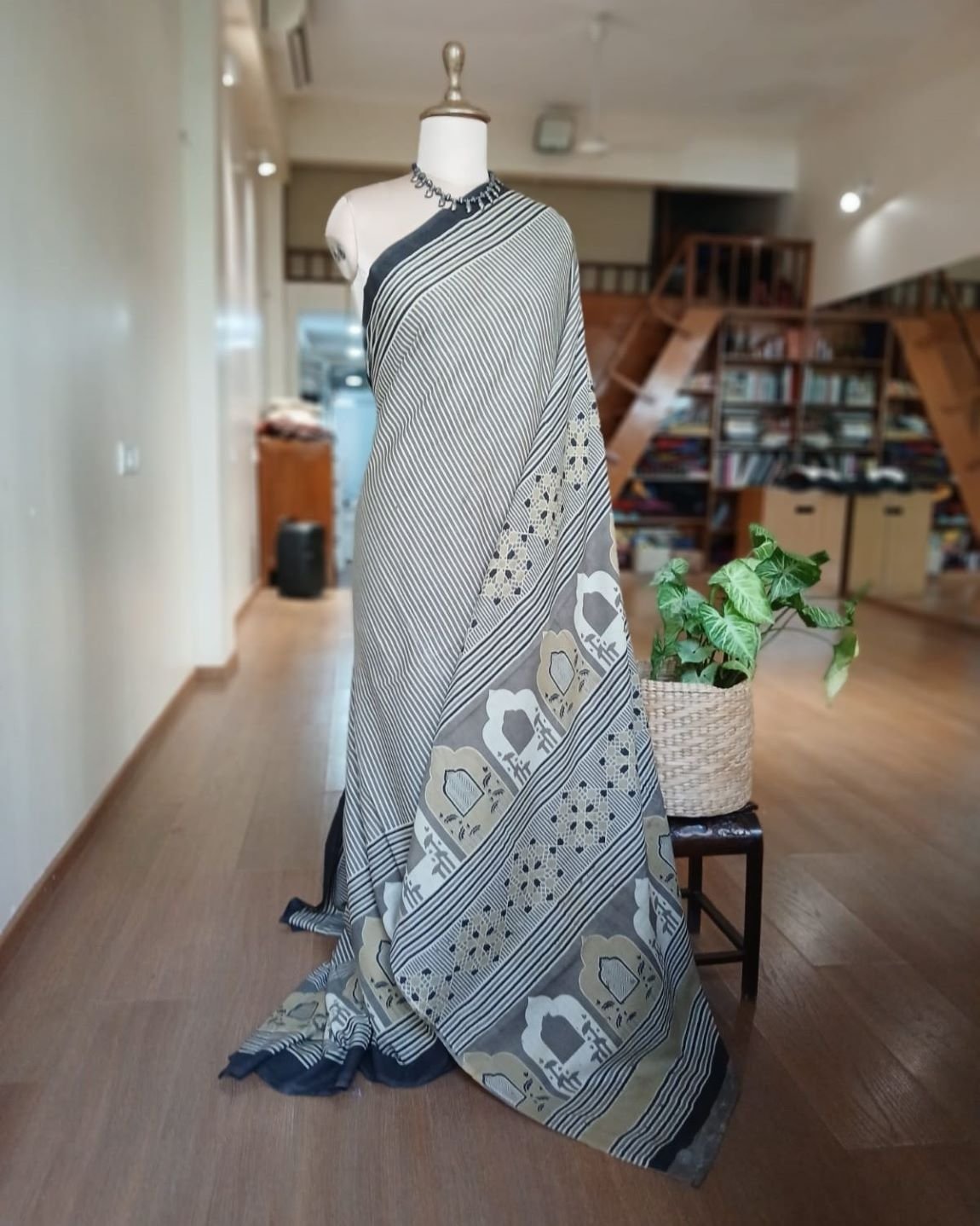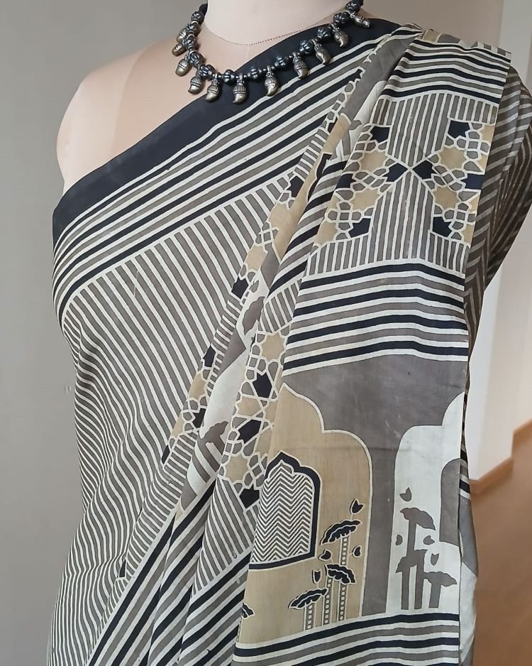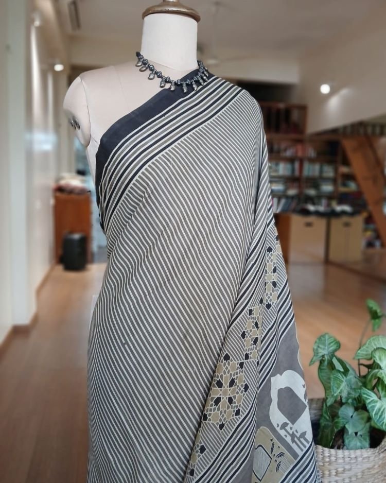Ajrakh in Natural Dyes on Mul Cotton Saree