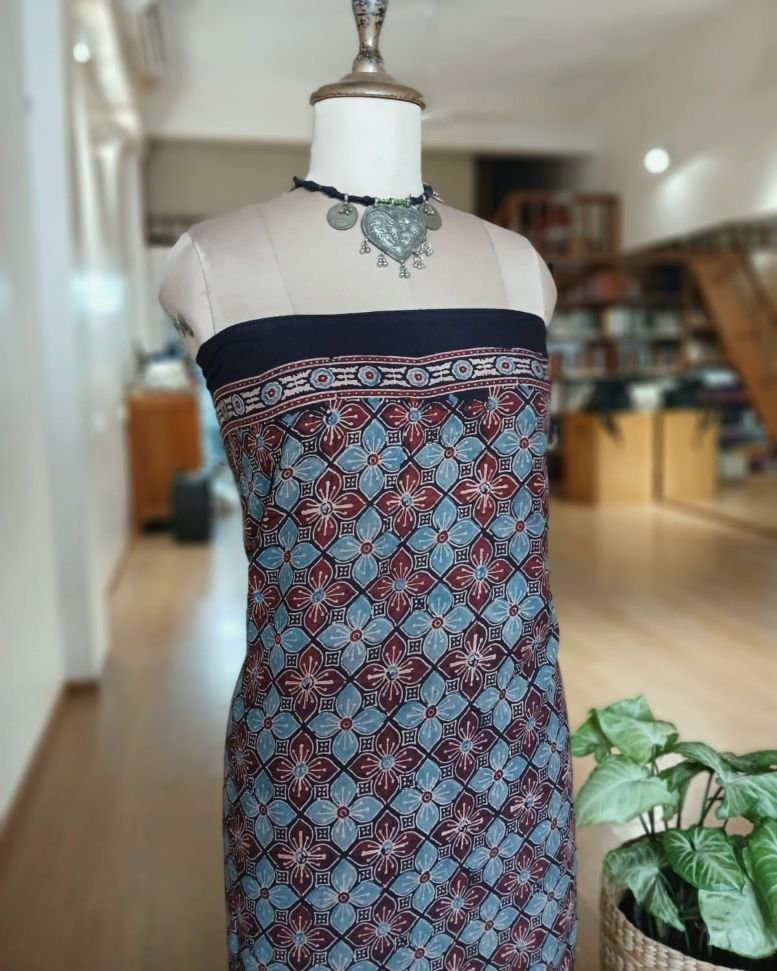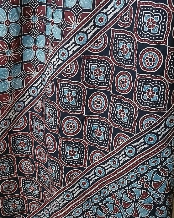 Ajrakh in Natural Dyes on Mul Cotton Saree. See More Details