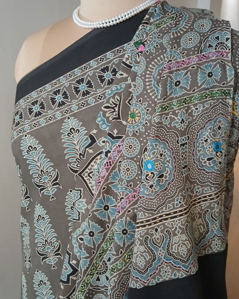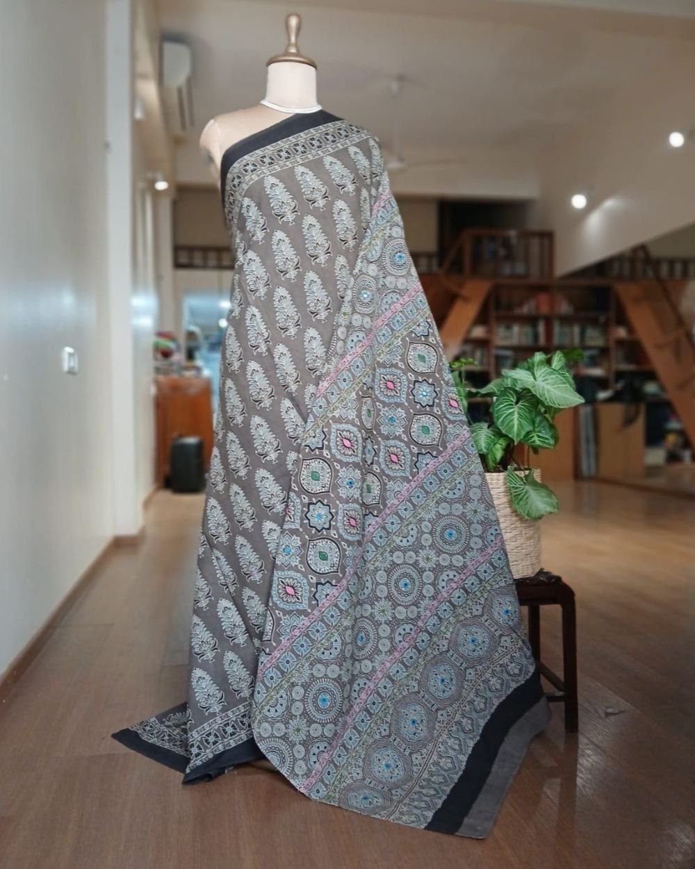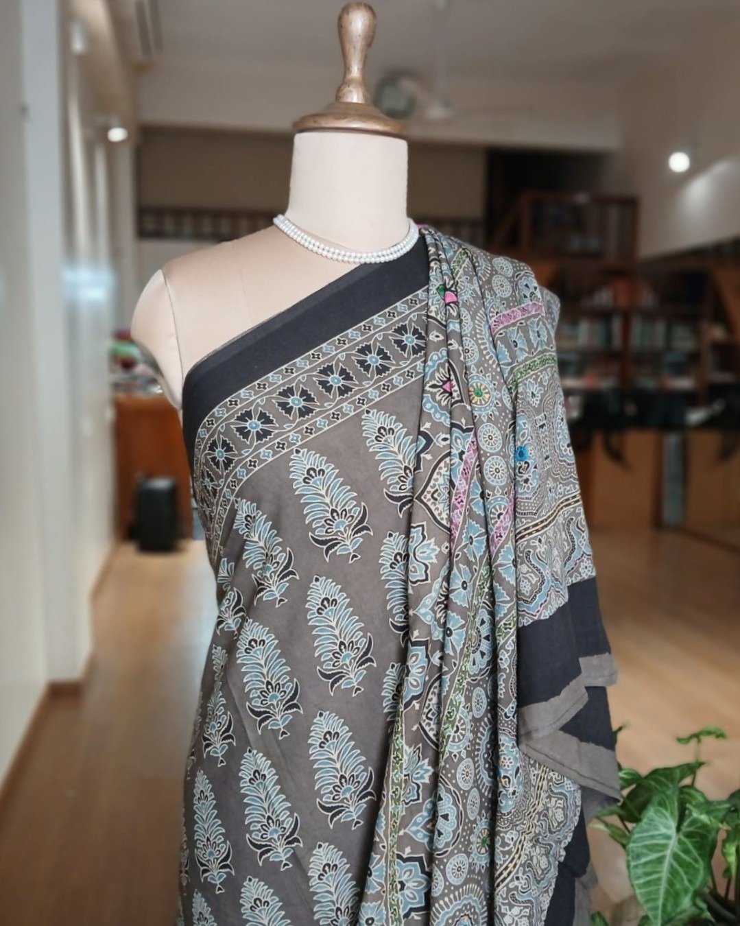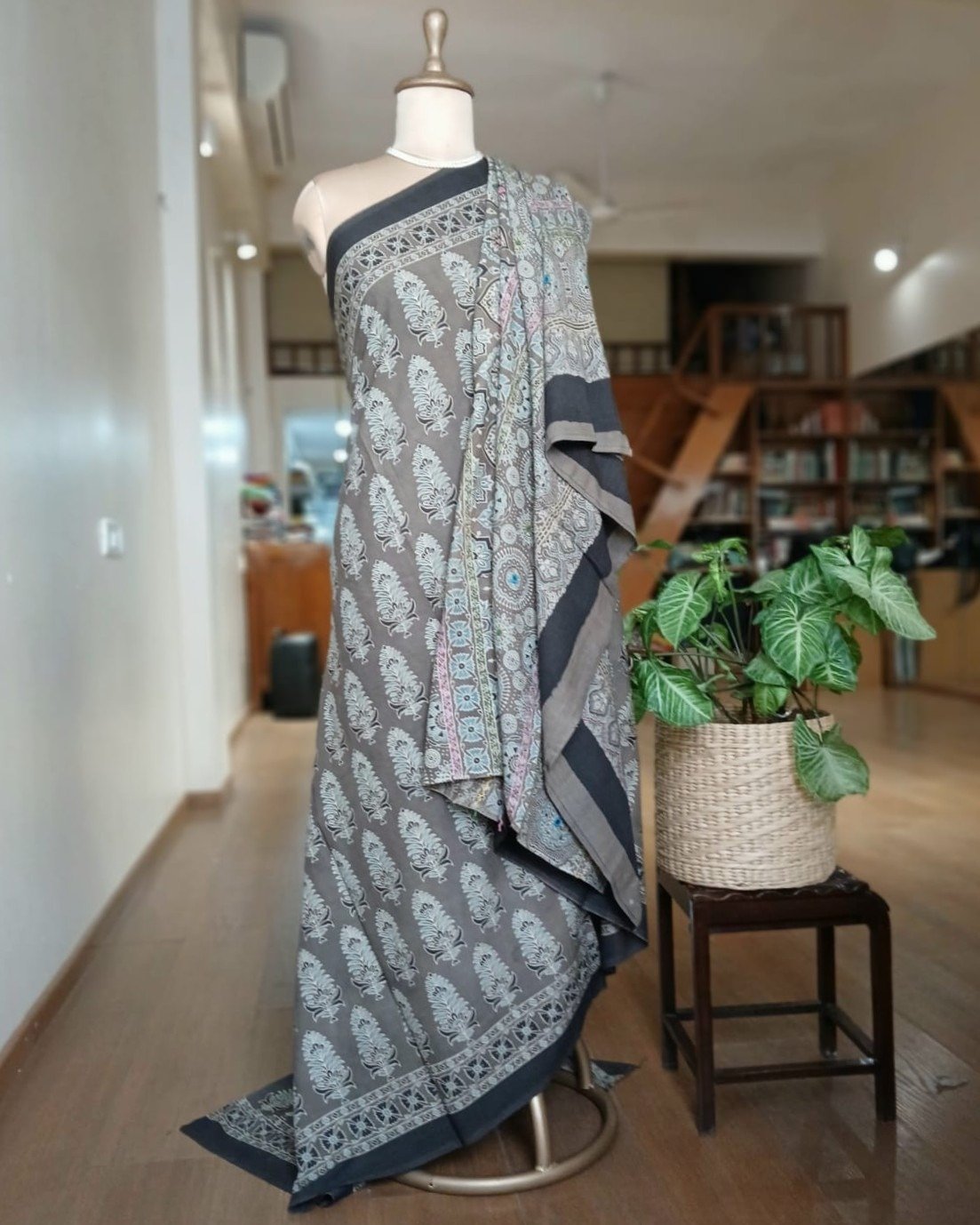 Tags: Ajrakh, Barmer, Cotton saree, Embroidered, Mul Cotton, Rajasthan