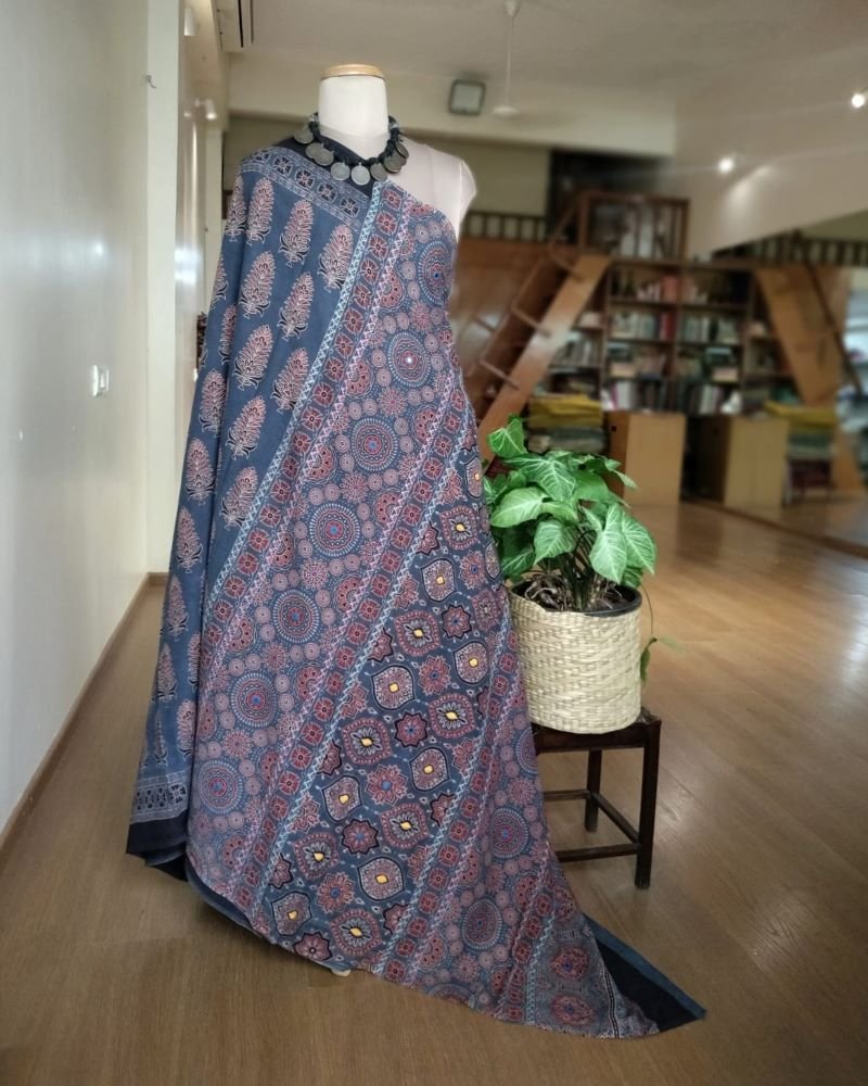 Tags: Ajrakh, Barmer, Cotton saree, Embroidered, Mul Cotton, Rajasthan