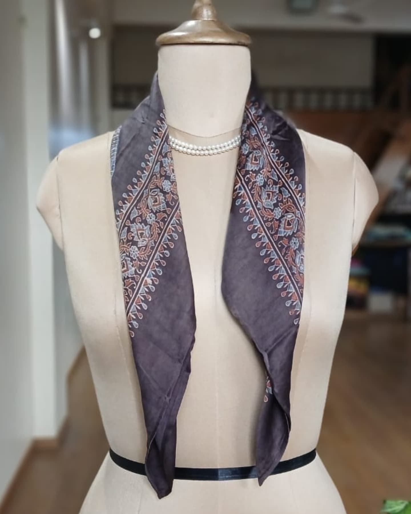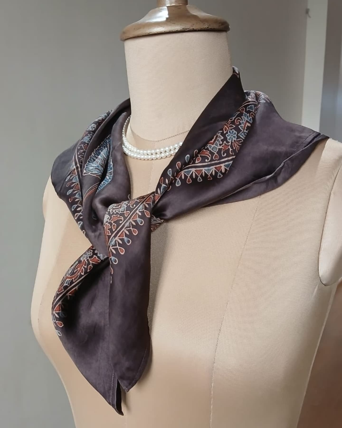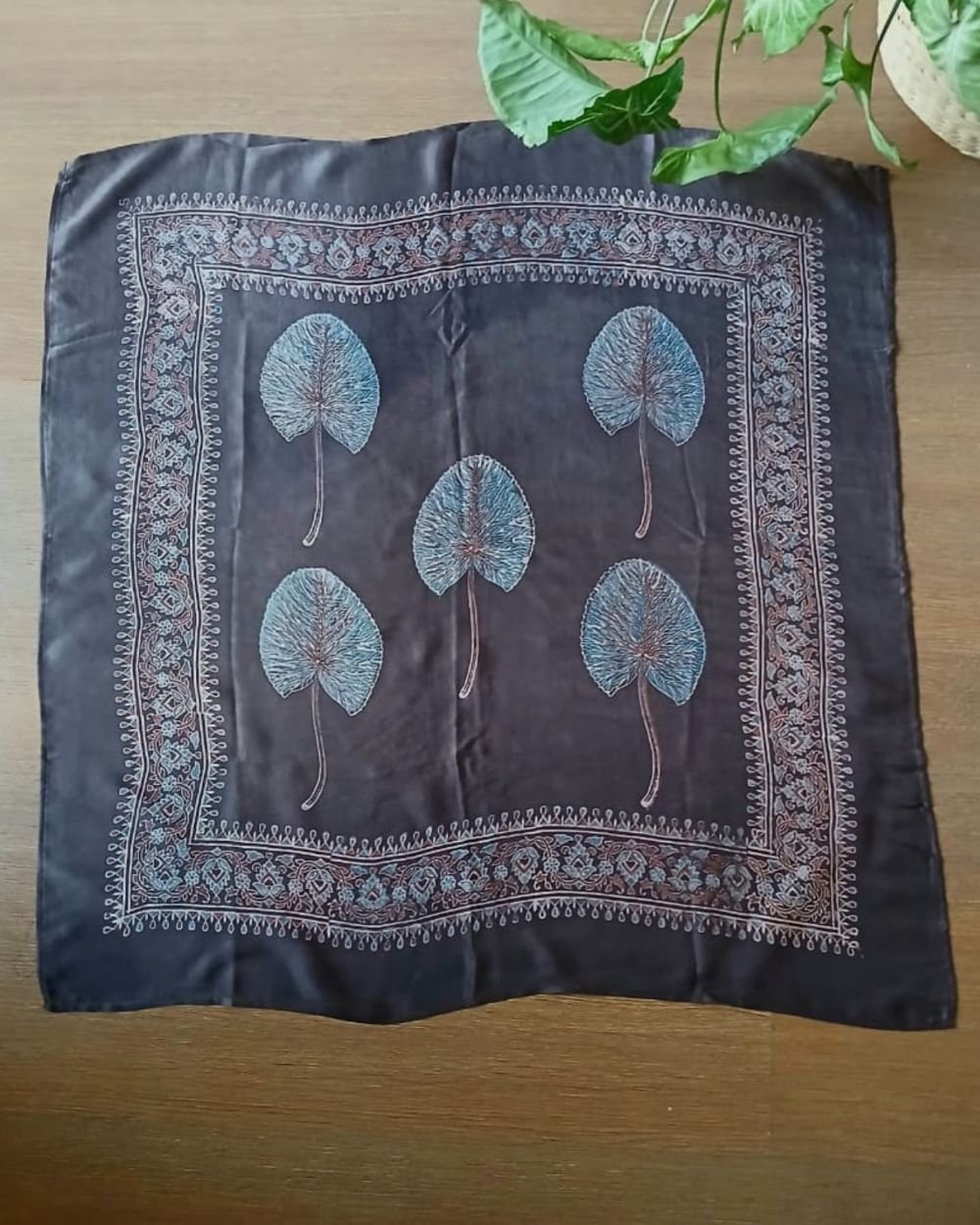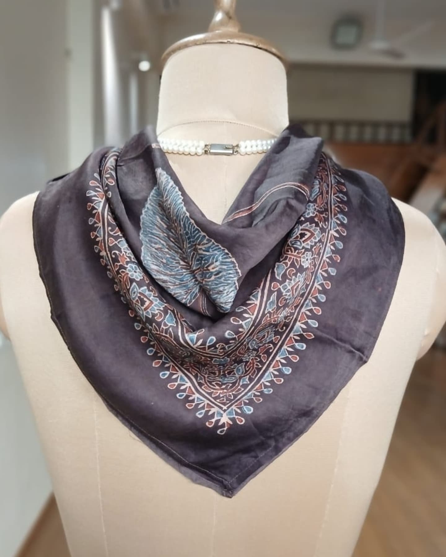 Ajrakh Natural Dyes Square Silk Scarf. Size 27 inches square. See more details below.