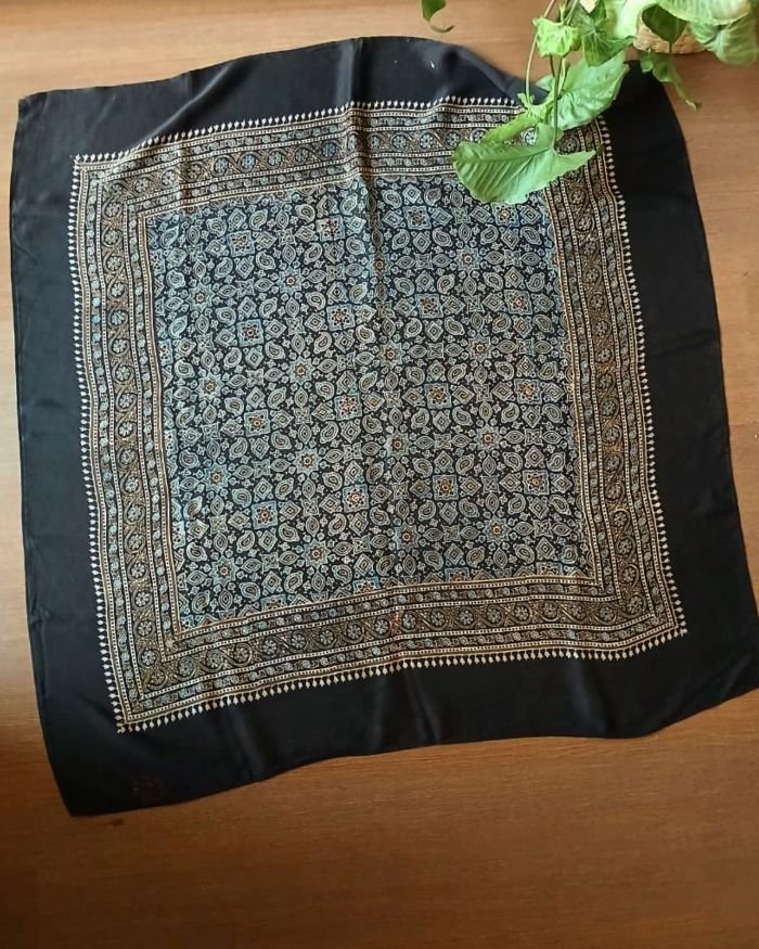 Ajrakh Natural Dyes Medium Square Scarf – (NDAS0007)