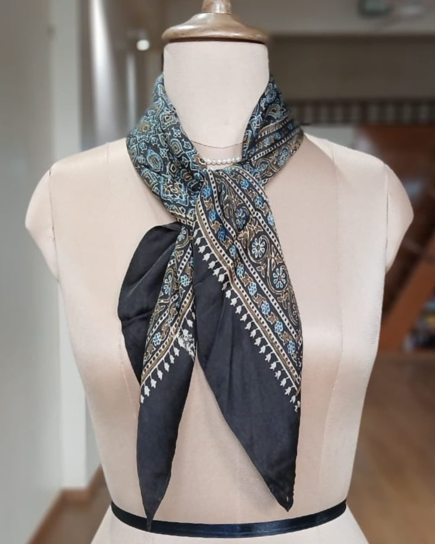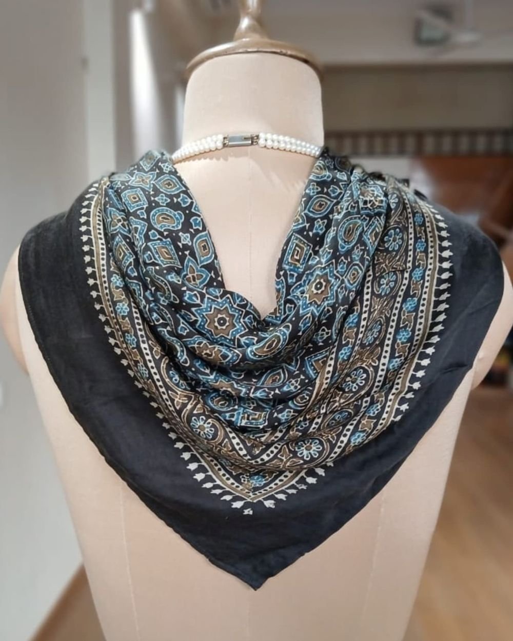 Ajrakh Natural Dyes Square Silk Scarf. Size 35 inches square. See more details below.