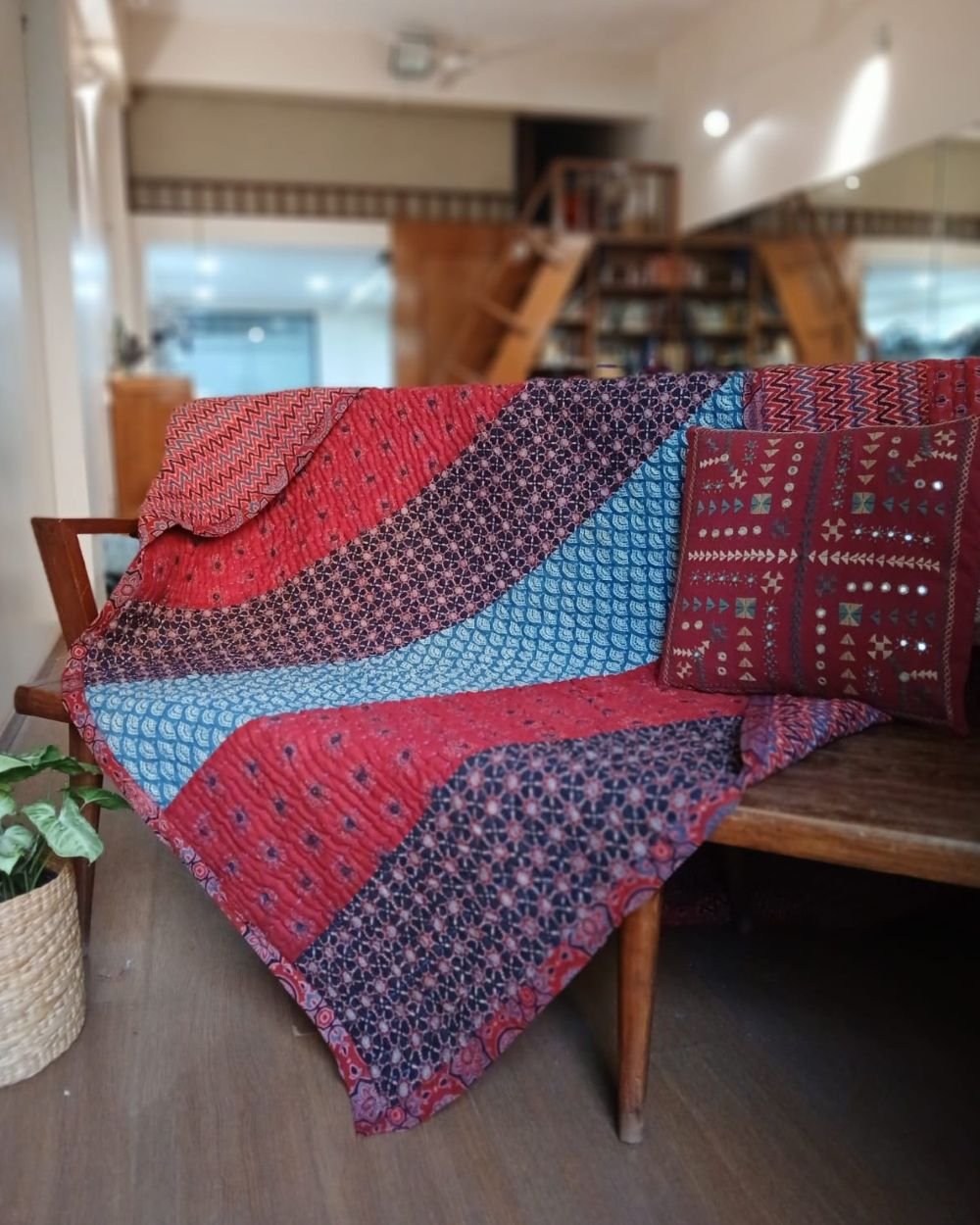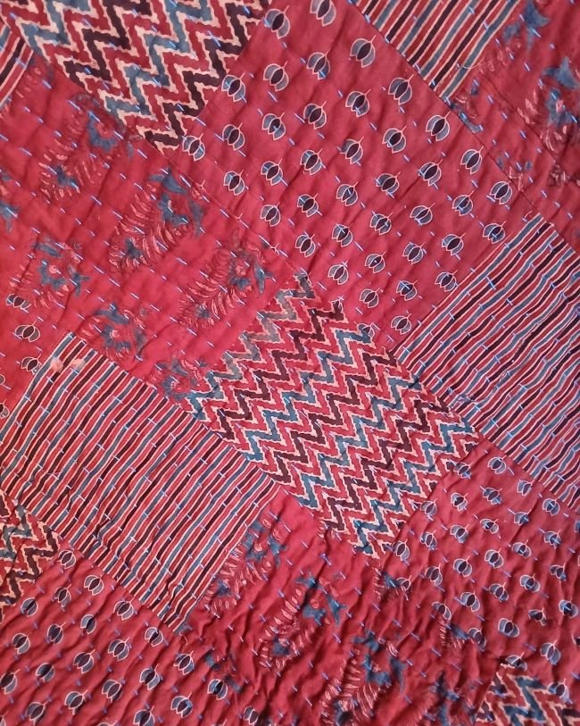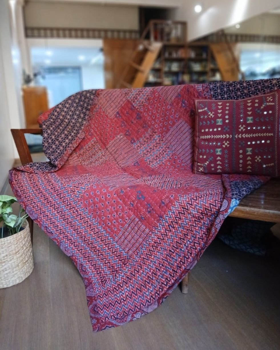 Ajrakh Patchwork Double Razai from Barmer in Rajasthan. See More Details.