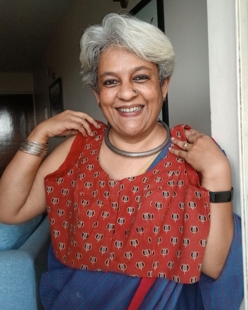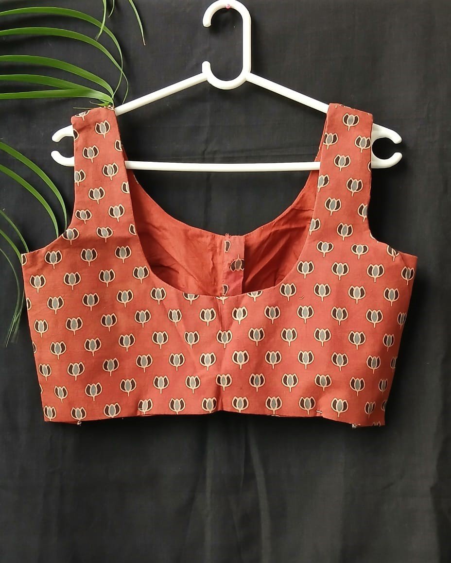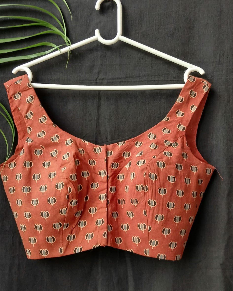 Smart and stylish sleeveless saree blouses. Cotton with handblock Ajrakh.