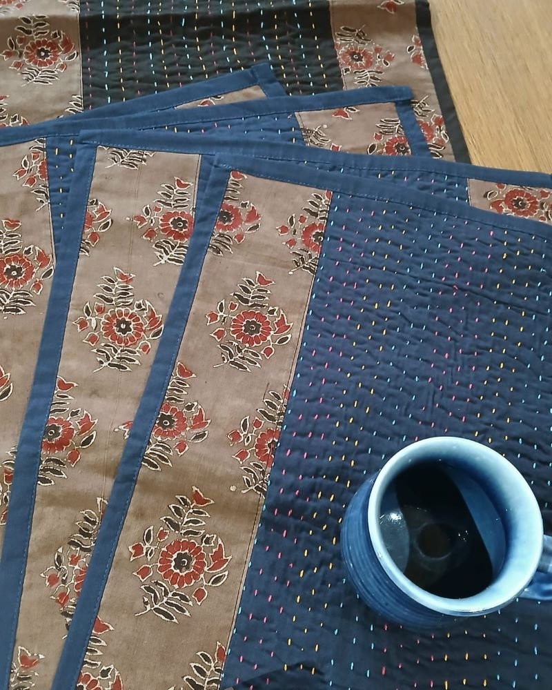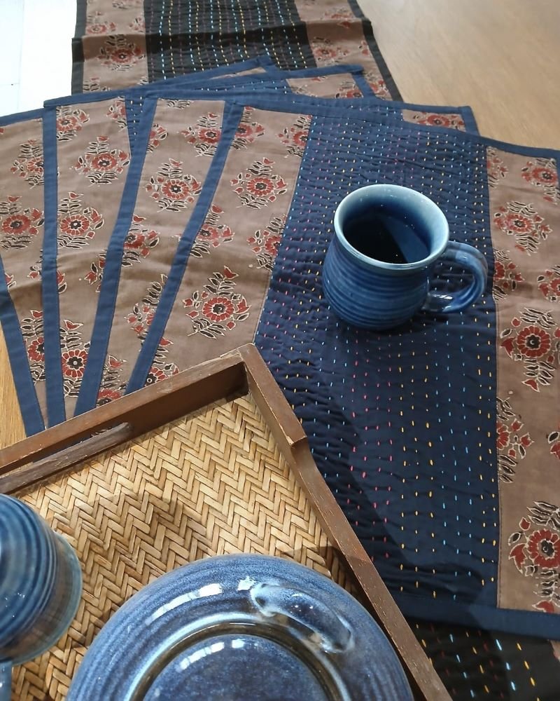 Set of 4 Ajrakh table mats and a table runner