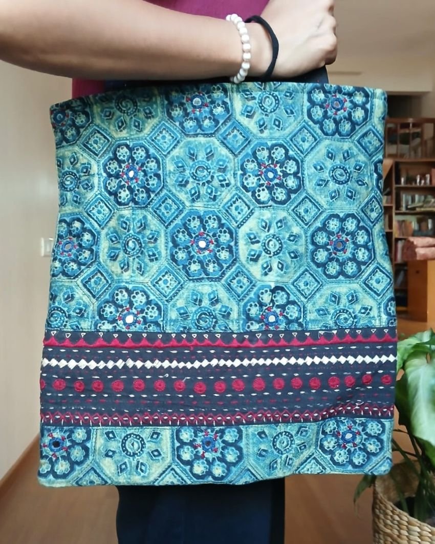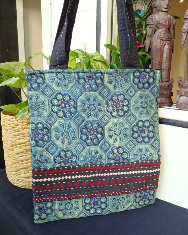 Natural Dyes Ajrakh Tote Bag. See more details below