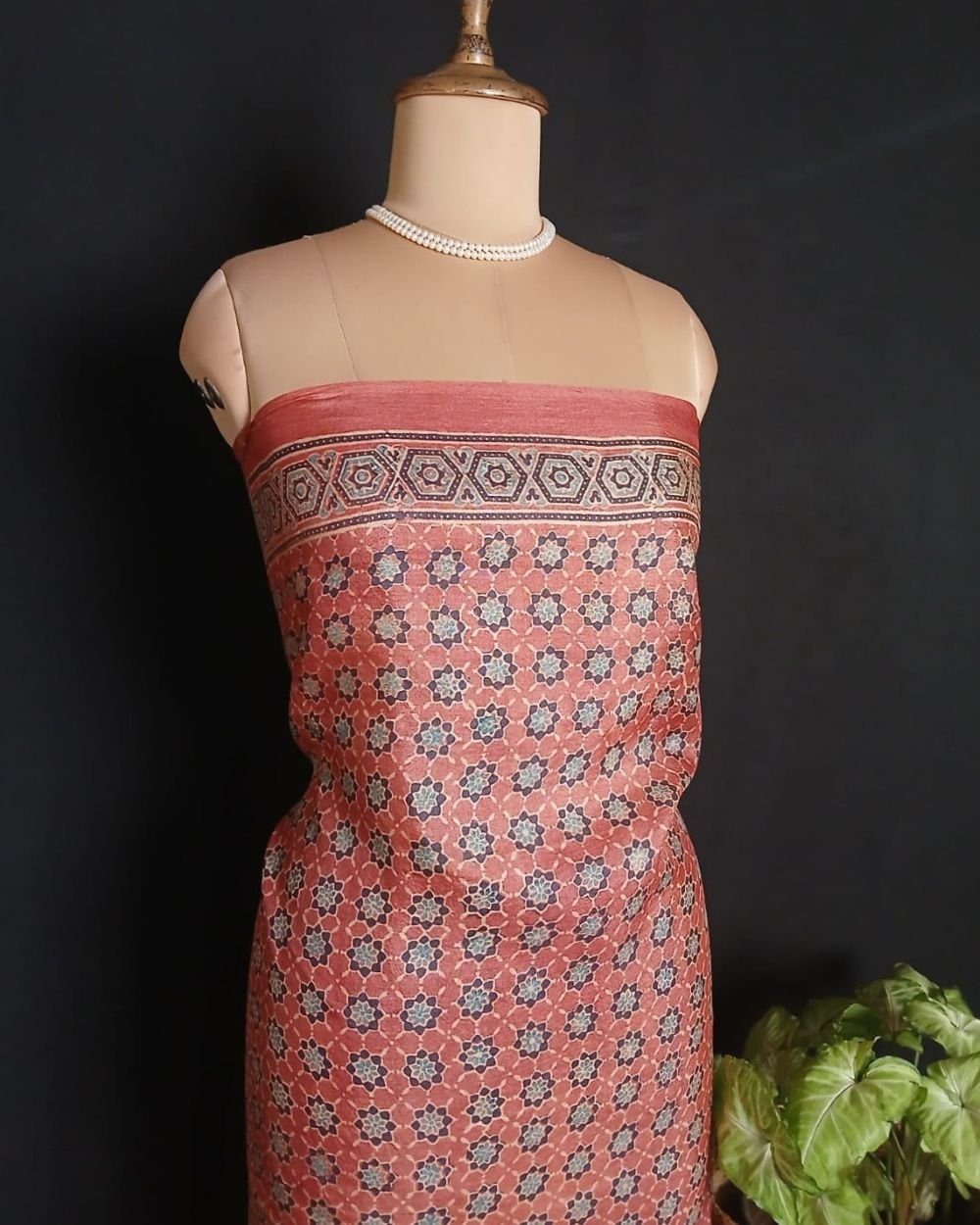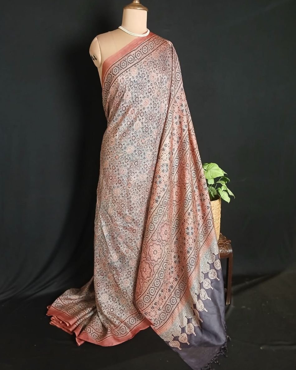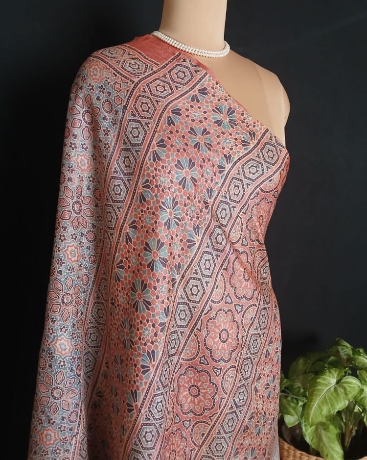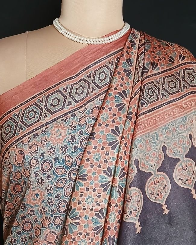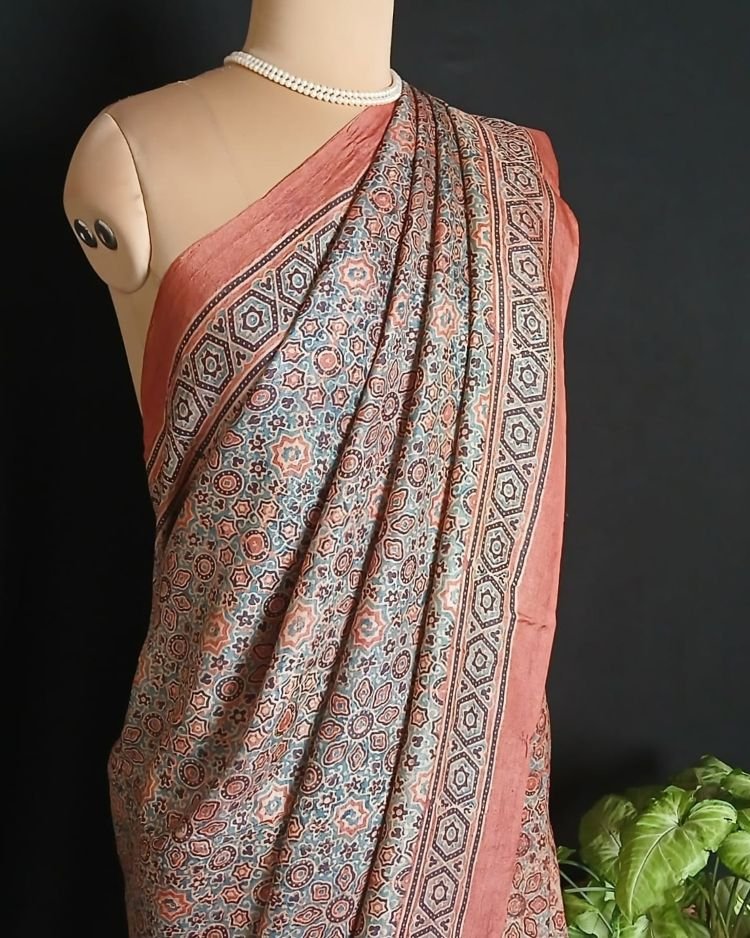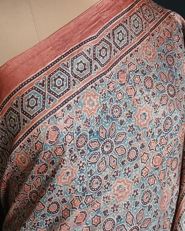 Ajrakh Tussar Silk Saree