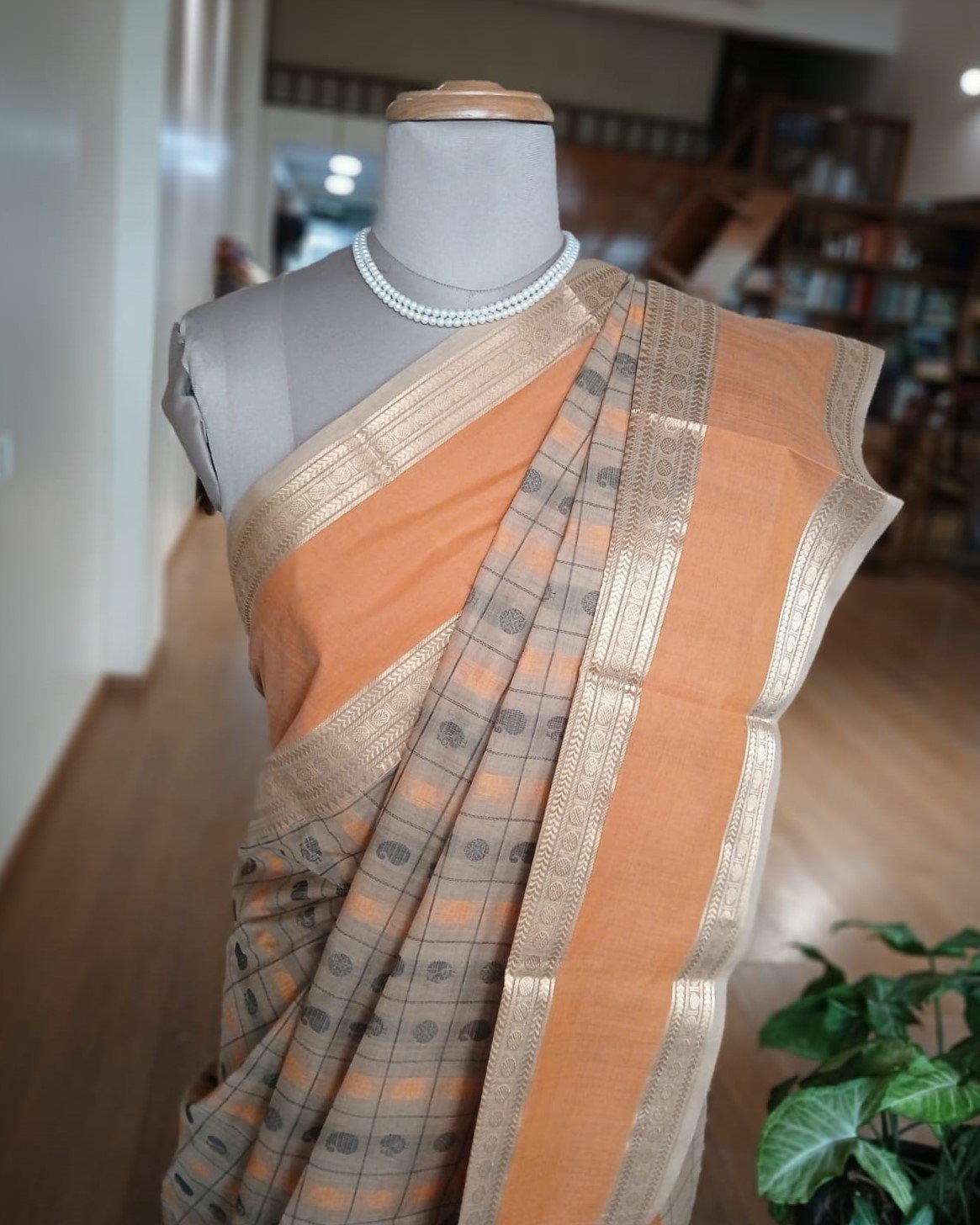 Ayiram Butta Kanchipuram handweave in cotton with zari border and palla.