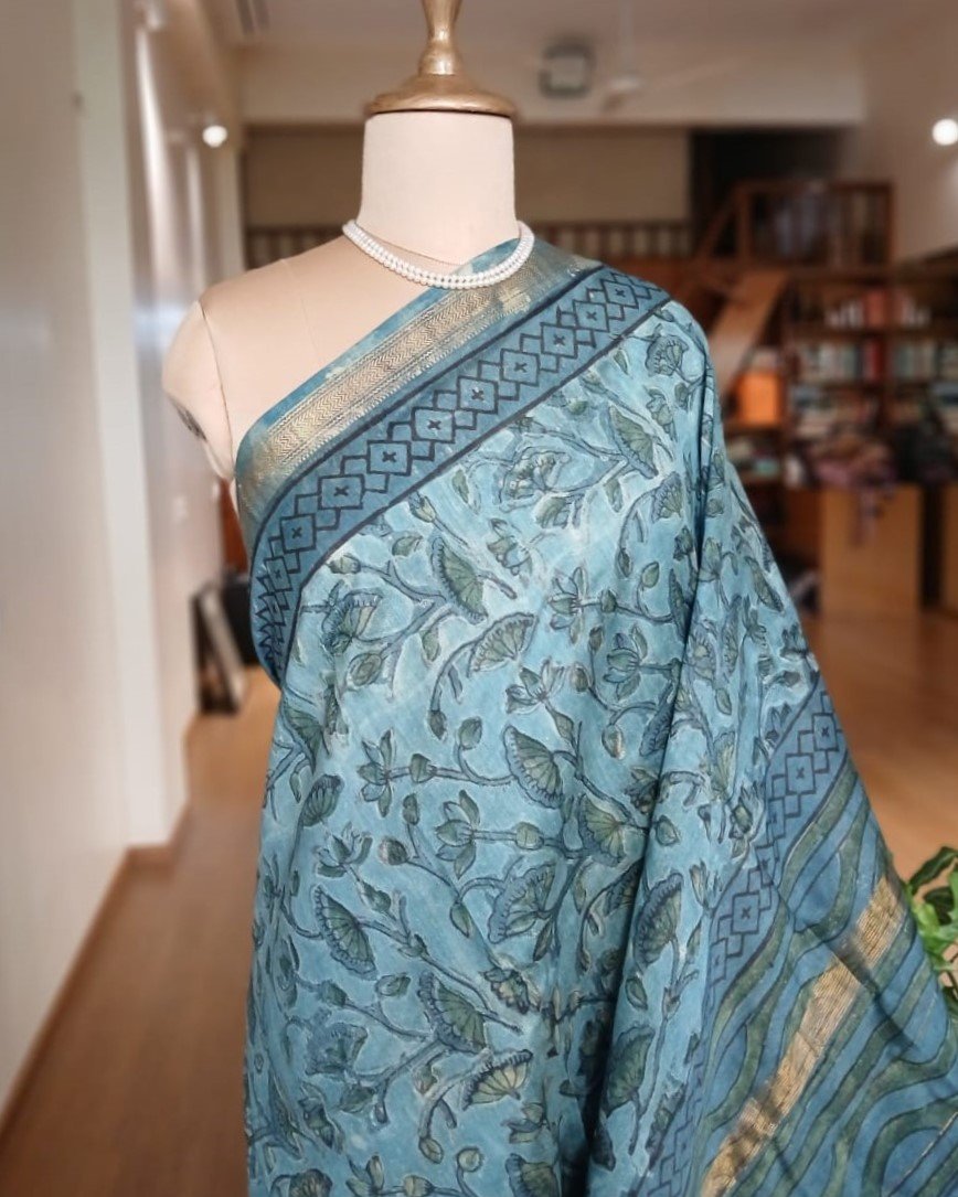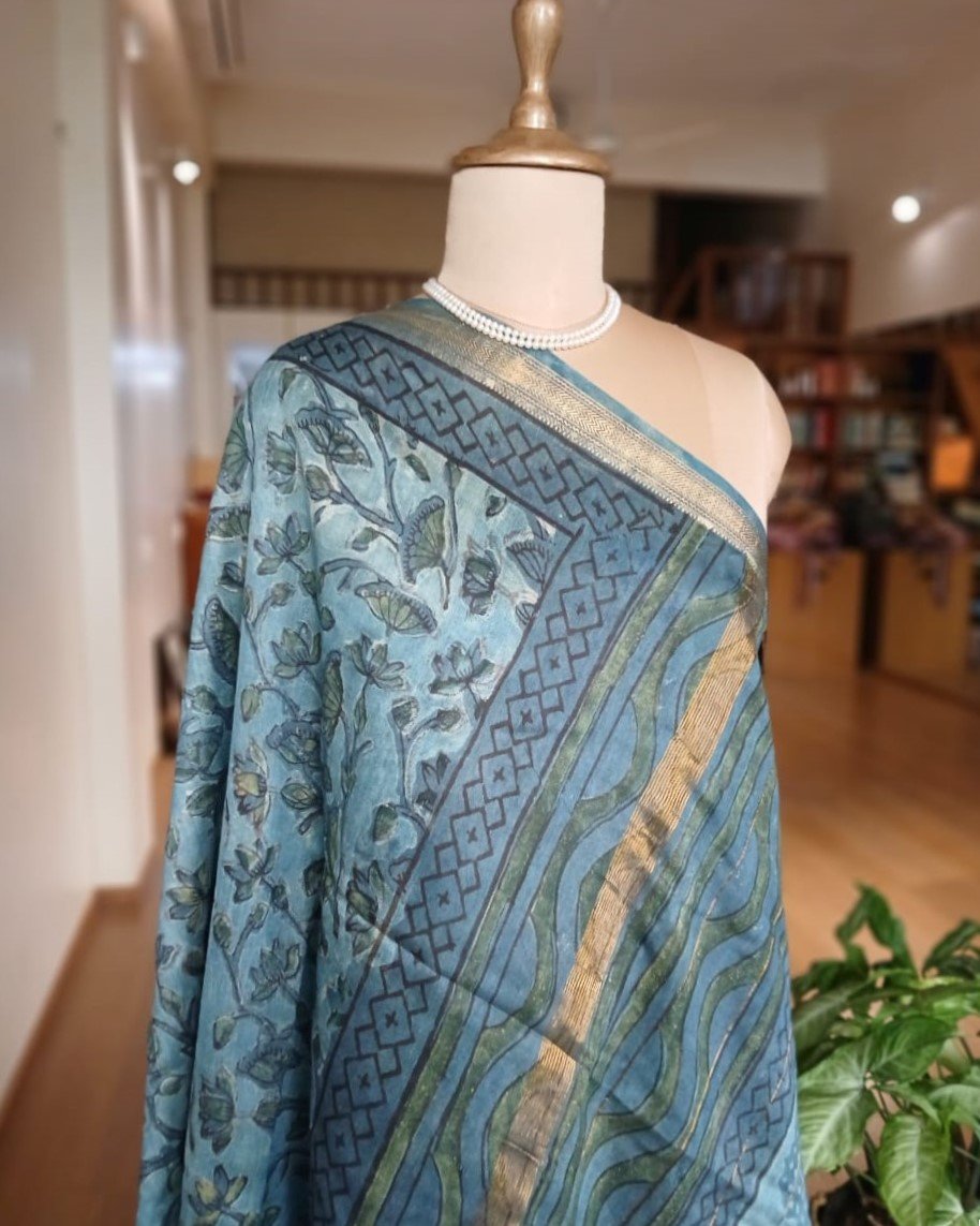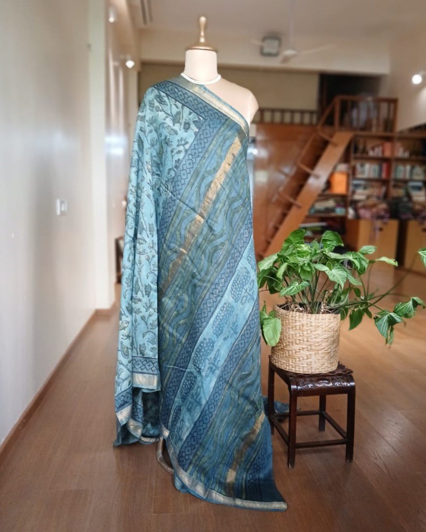 Bagru hand blockprint on Maheshwari Silk-Cotton