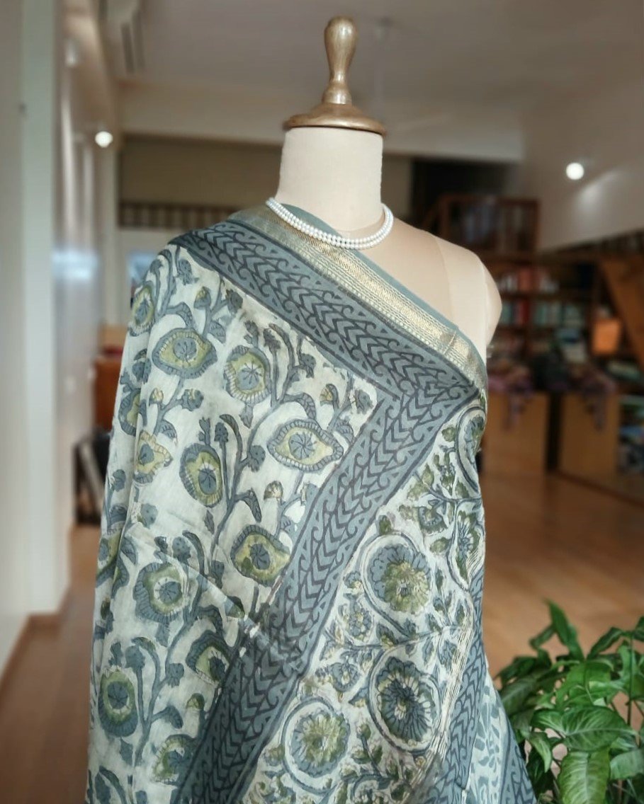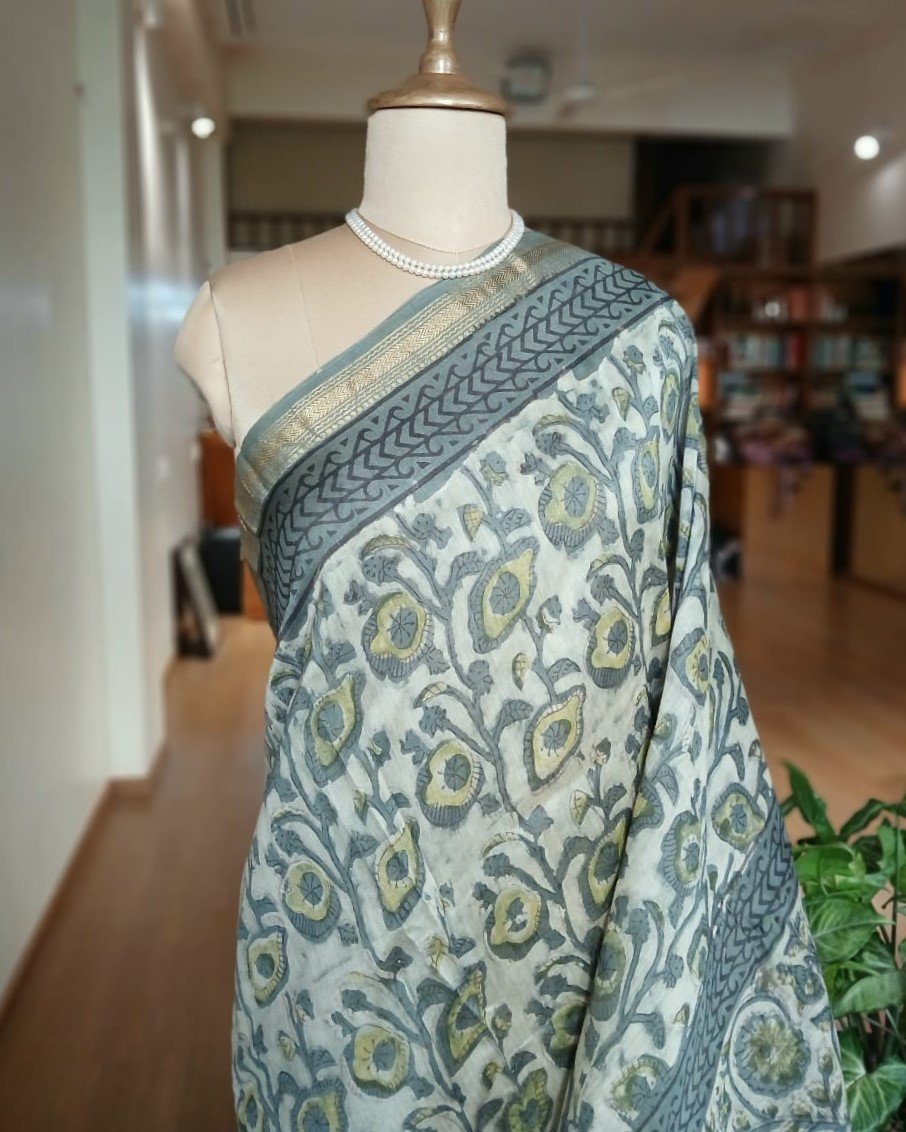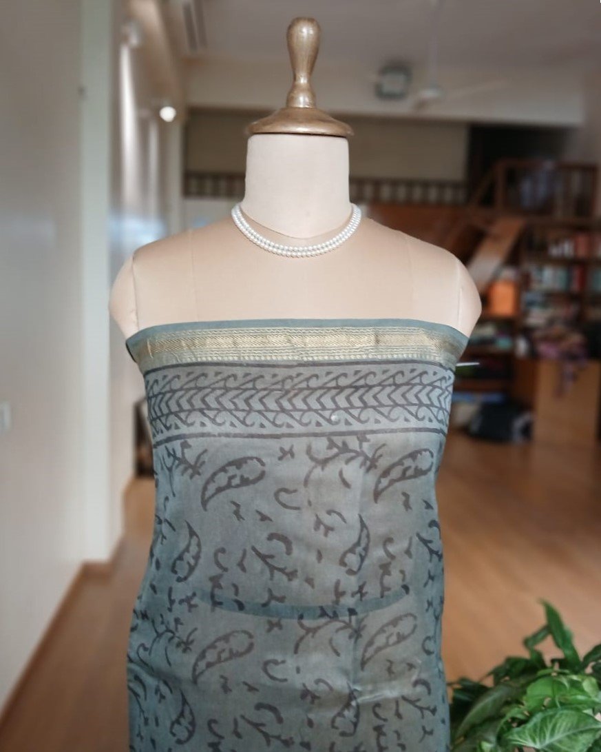 Bagru hand blockprint on Maheshwari Silk-Cotton