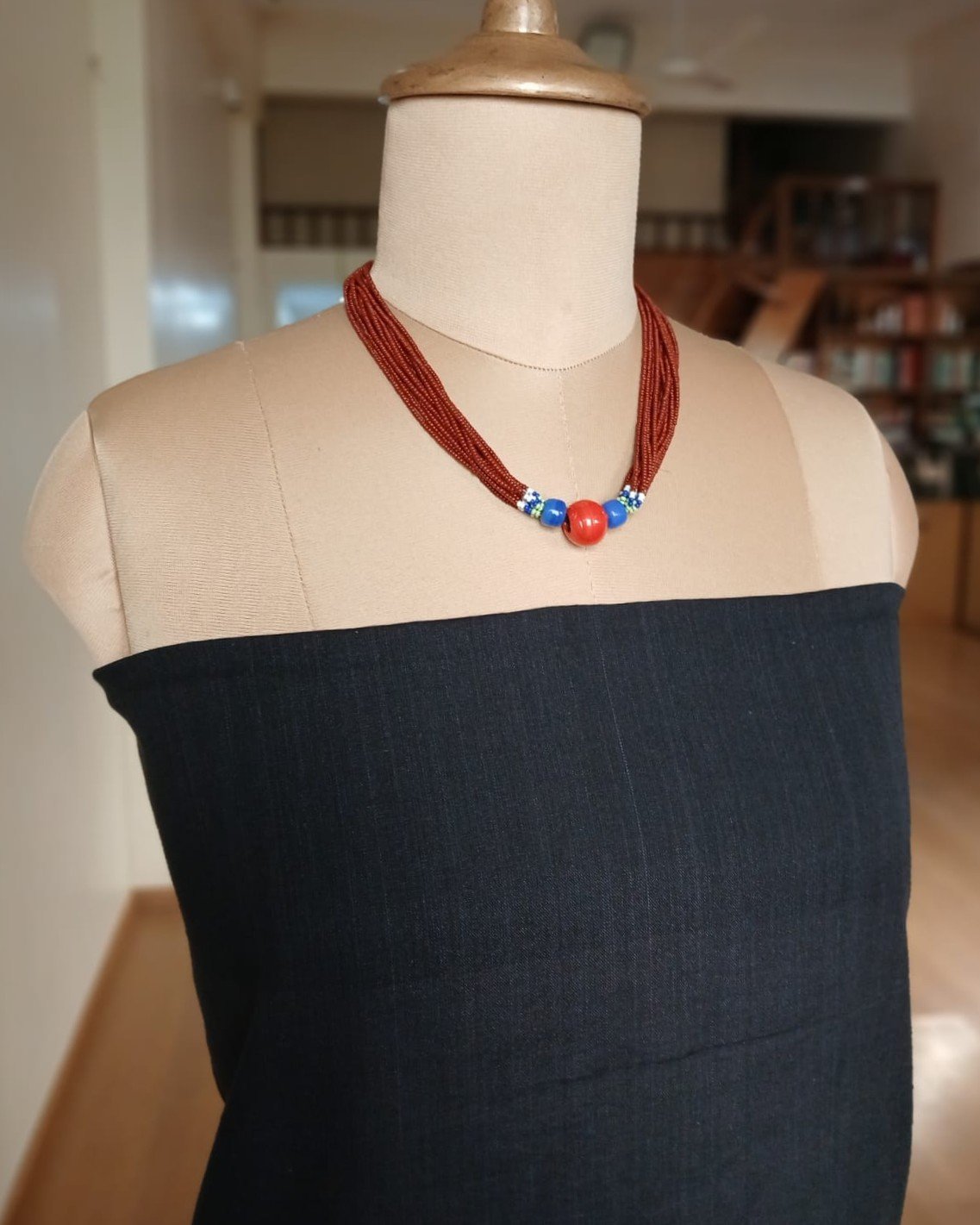 This necklace is made by Baiga women as part of a livelihood program.