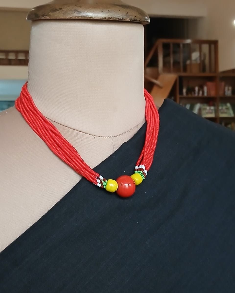 This necklace is made by Baiga women as part of a livelihood program.