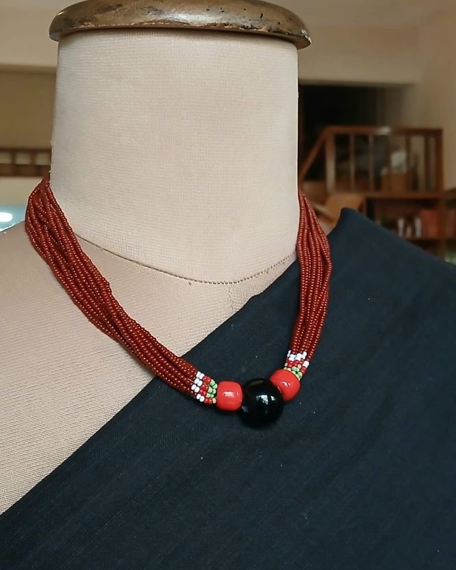 This necklace is made by Baiga women as part of a livelihood program.