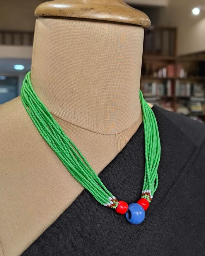 This necklace is made by Baiga women as part of a livelihood program.