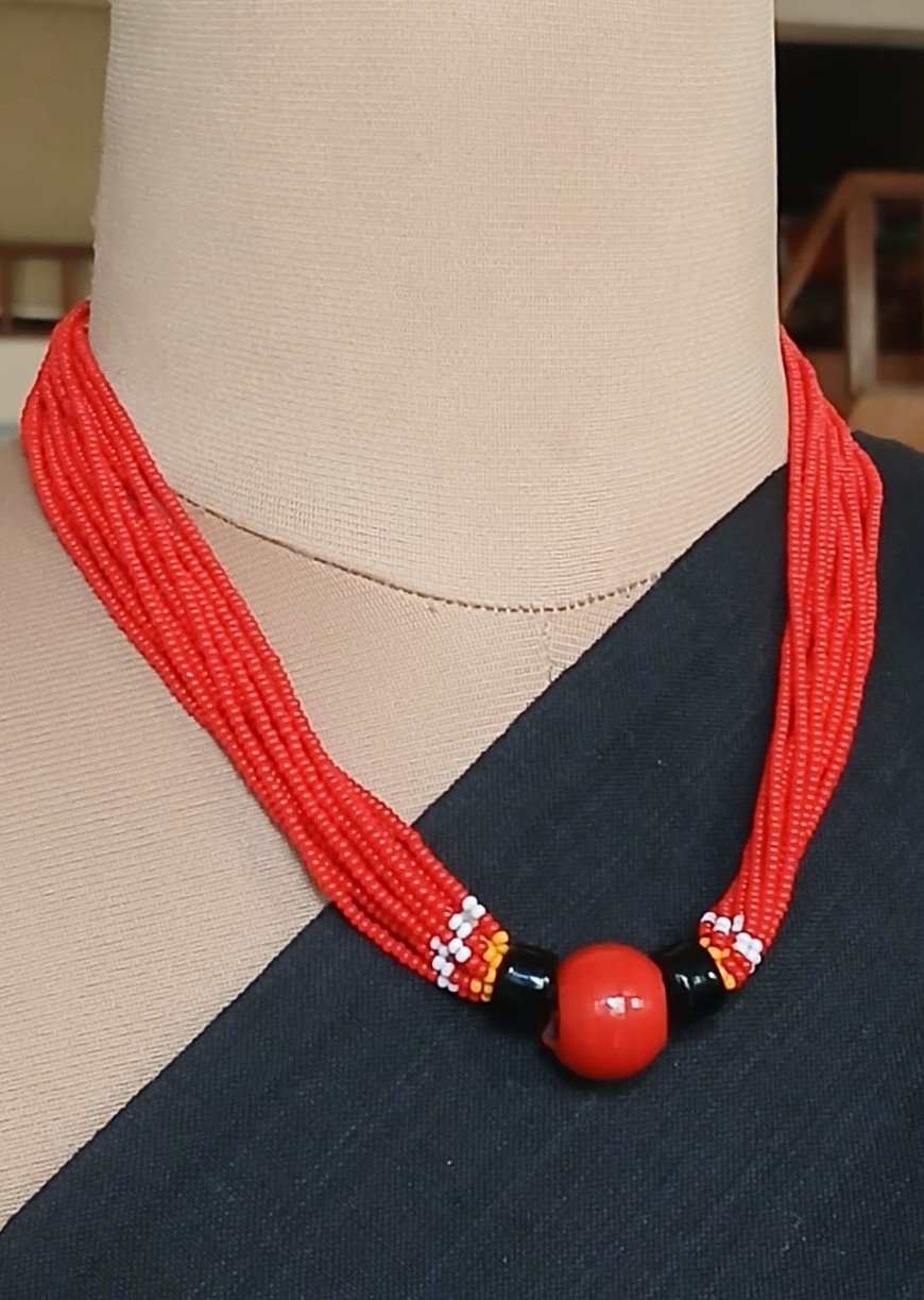 This necklace is made by Baiga women as part of a livelihood program.