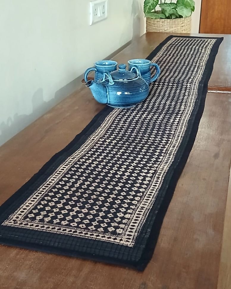 Bamboo Table Runner hand block printed in natural dyes in Bagh (Madhya Pradesh).
