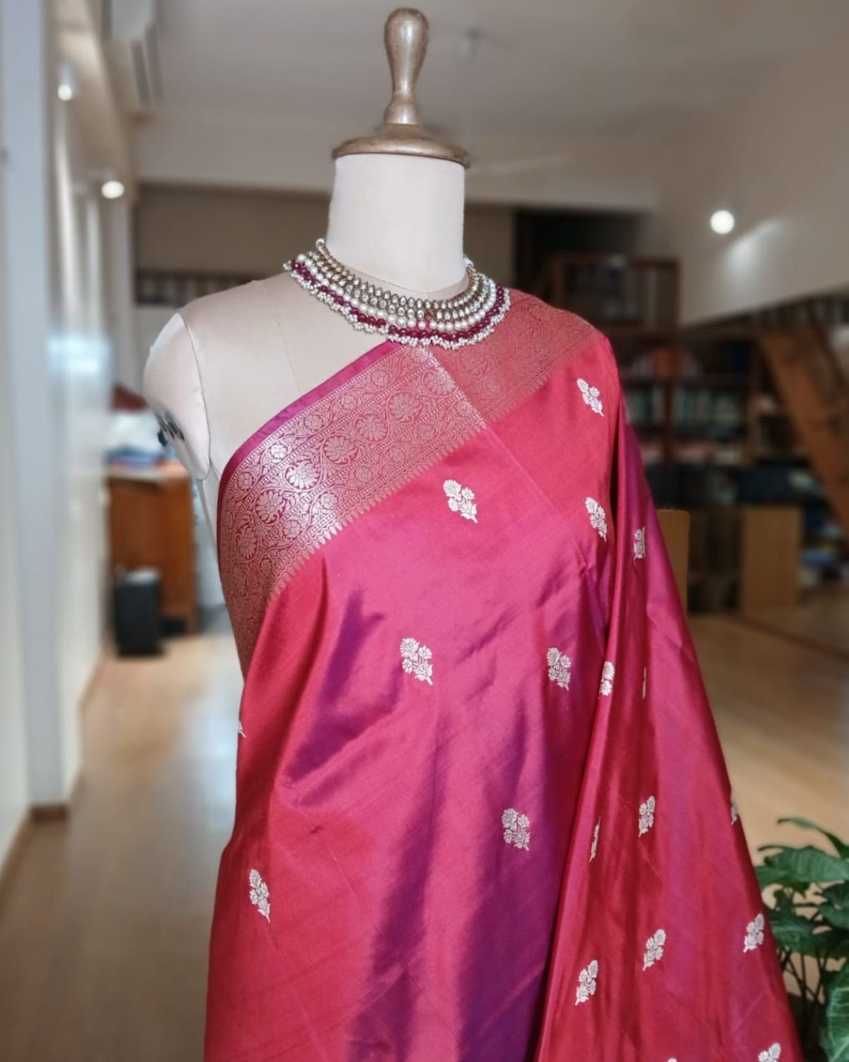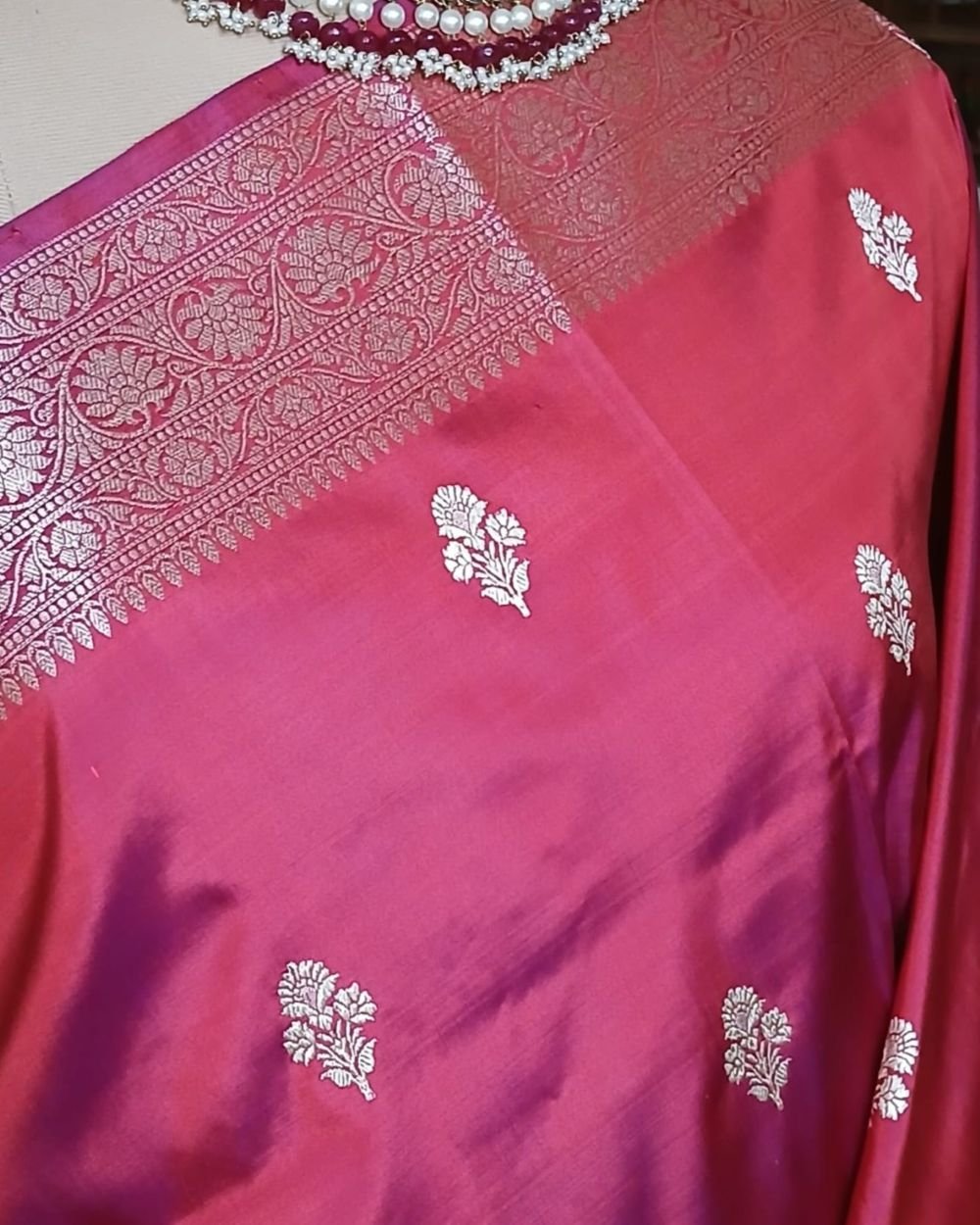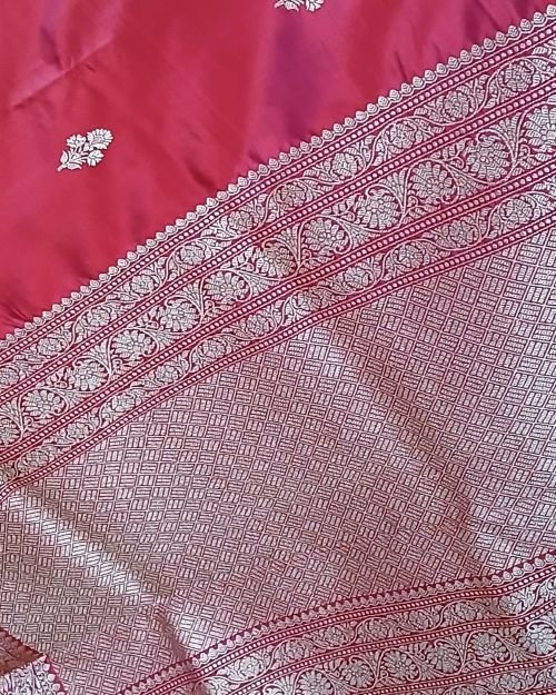 Banarasi pure silk (katan silk) saree with kadua buttis and laccha borders.